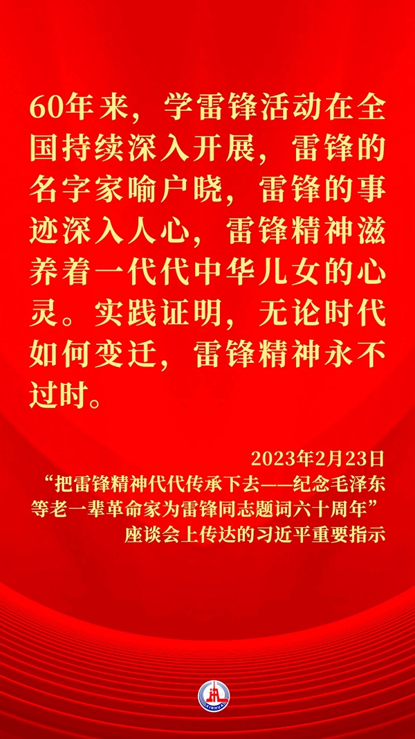 “雷鋒是時(shí)代的楷模,雷鋒精神是永恒的。實(shí)現(xiàn)中華民族偉大復(fù)興,需要更多時(shí)代楷模?!绷?xí)近平總書記的號(hào)召,喚起億萬人奮斗與堅(jiān)守。新時(shí)代,雷鋒精神是持續(xù)激發(fā)崇德向善的磅礴偉力;新時(shí)代“雷鋒”,在新征程上頑強(qiáng)拼搏,匯聚起共和國奔騰向前的時(shí)代潮流!