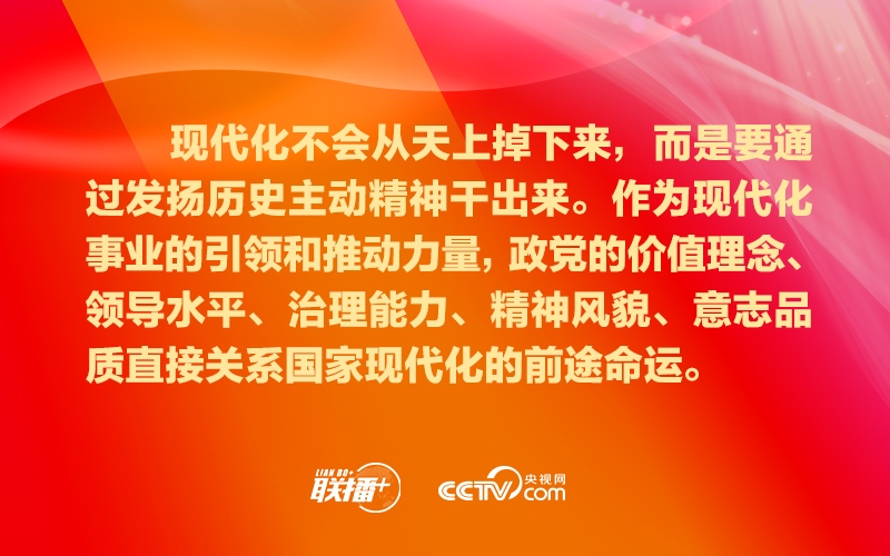 政黨要把自身建設(shè)和國家現(xiàn)代化建設(shè)緊密結(jié)合起來,踔厲奮發(fā),勇毅篤行,超越自我,確保始終有信心、有意志、有能力應(yīng)對(duì)好時(shí)代挑戰(zhàn)、回答好時(shí)代命題、呼應(yīng)好人民期盼,為不斷推進(jìn)現(xiàn)代化進(jìn)程引領(lǐng)方向、凝聚力量。