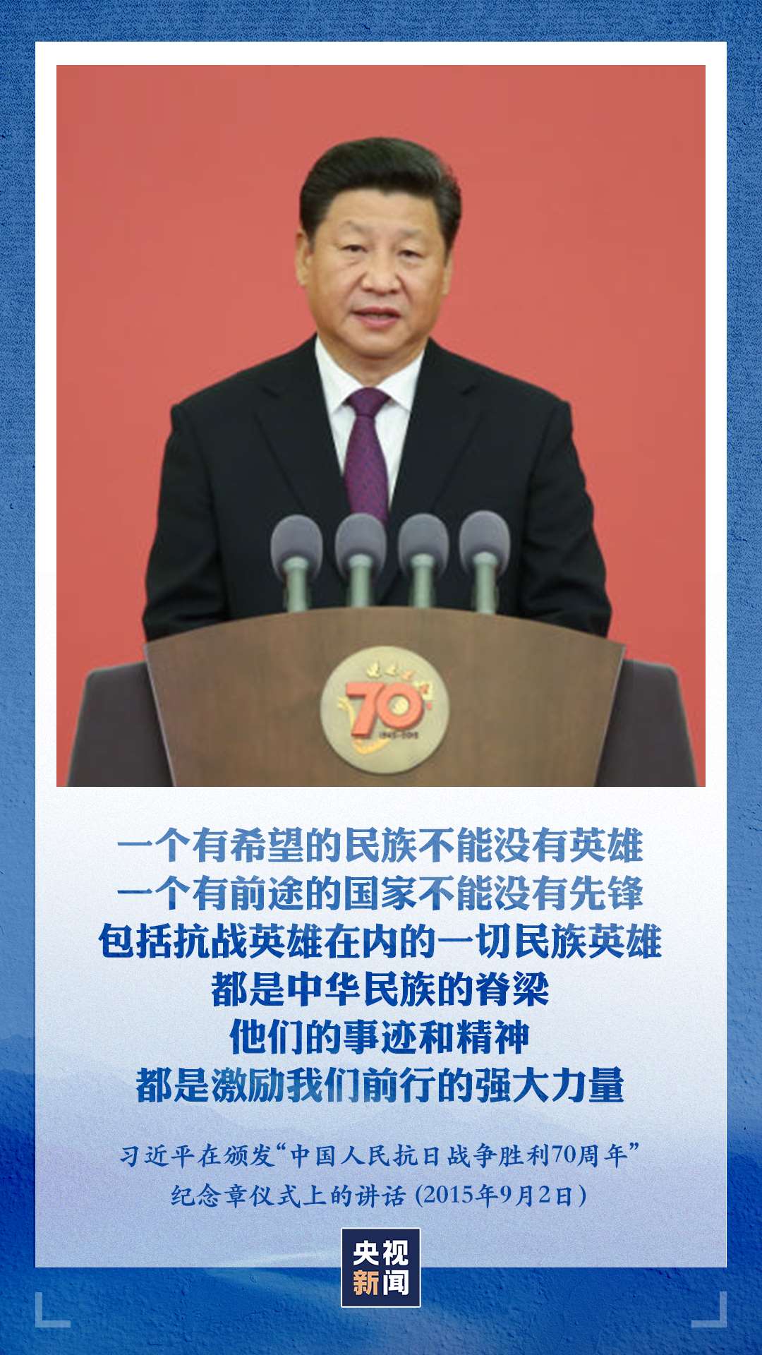 “一個(gè)有希望的民族不能沒有英雄,一個(gè)有前途的國(guó)家不能沒有先鋒?!绷?xí)近平總書記強(qiáng)調(diào),包括抗戰(zhàn)英雄在內(nèi)的一切民族英雄,都是中華民族的脊梁,他們的事跡和精神都是激勵(lì)我們前行的強(qiáng)大力量。