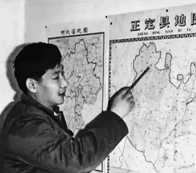 習(xí)近平在辦公室地圖前謀劃正定的發(fā)展。(圖源:《讓群眾過(guò)上好日子——習(xí)近平正定足跡》)