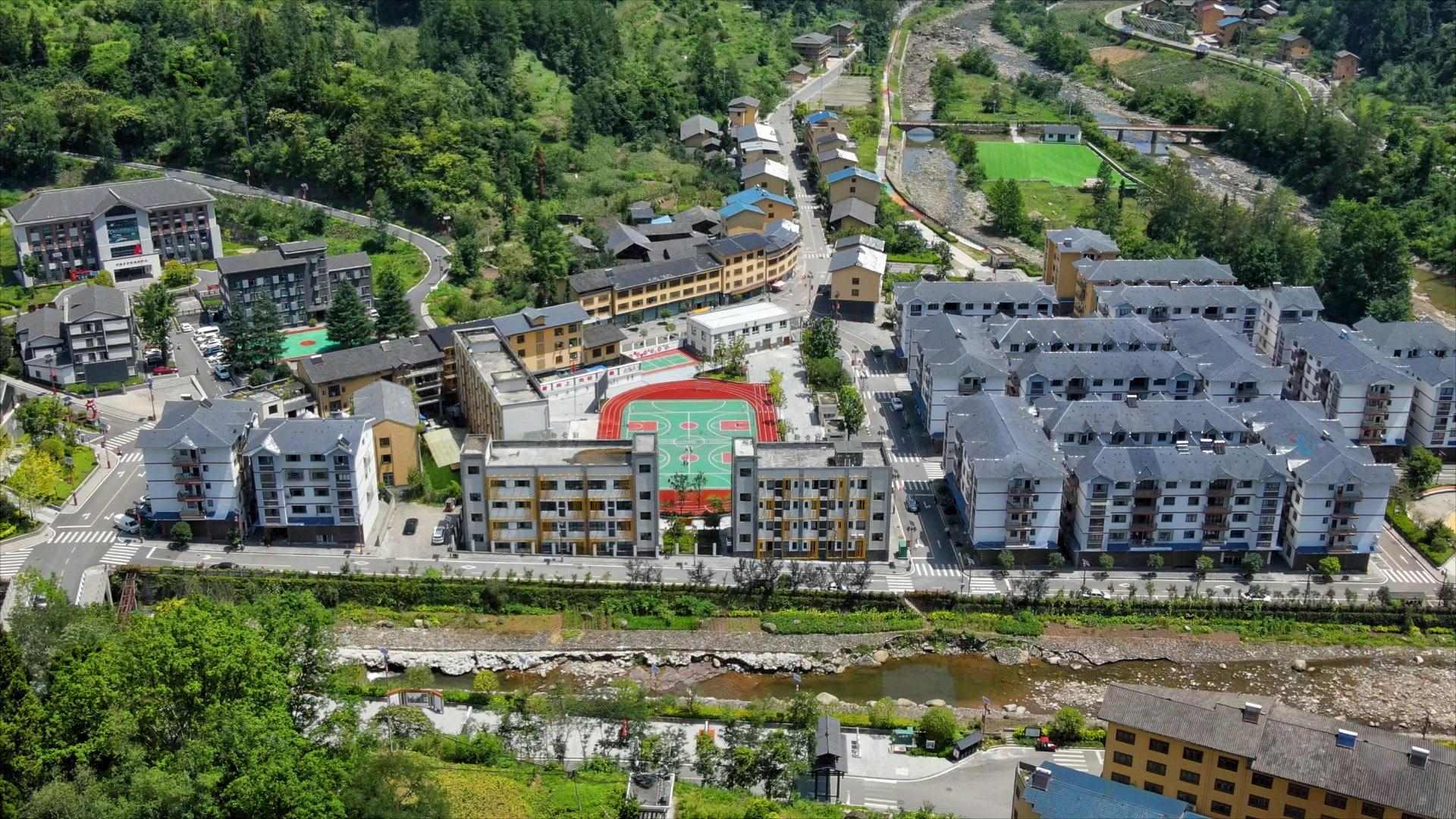 青山腳下操場嶄新,綜合樓、實驗室、圖書館一應(yīng)俱全,塑膠操場、籃球場、足球場躍動著孩子們奔跑的身影。