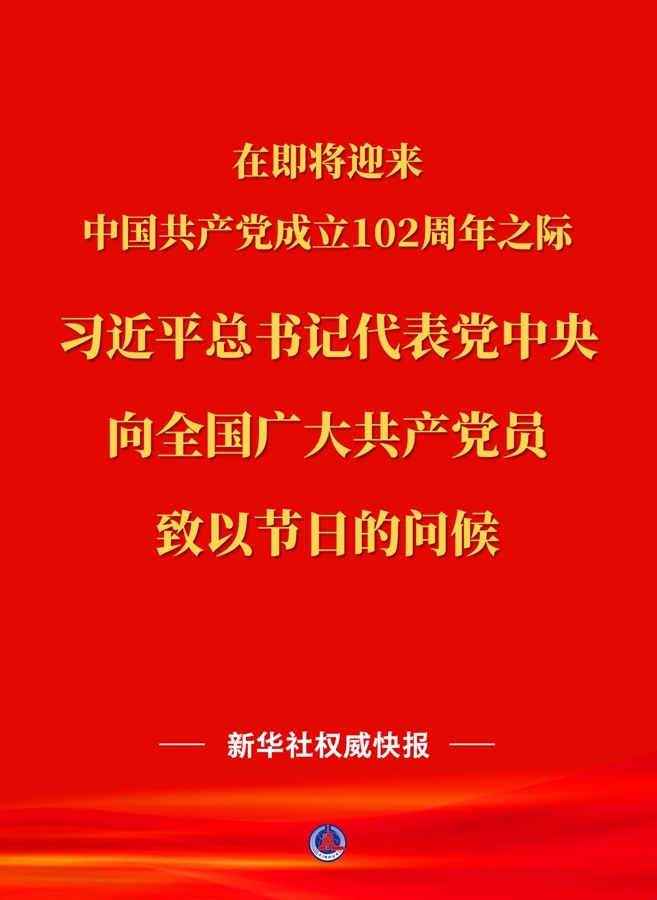 習(xí)近平總書記代表黨中央向全國廣大共產(chǎn)黨員致以節(jié)日問候 在即將迎來中國共產(chǎn)黨成立102周年之際,習(xí)近平總書記代......