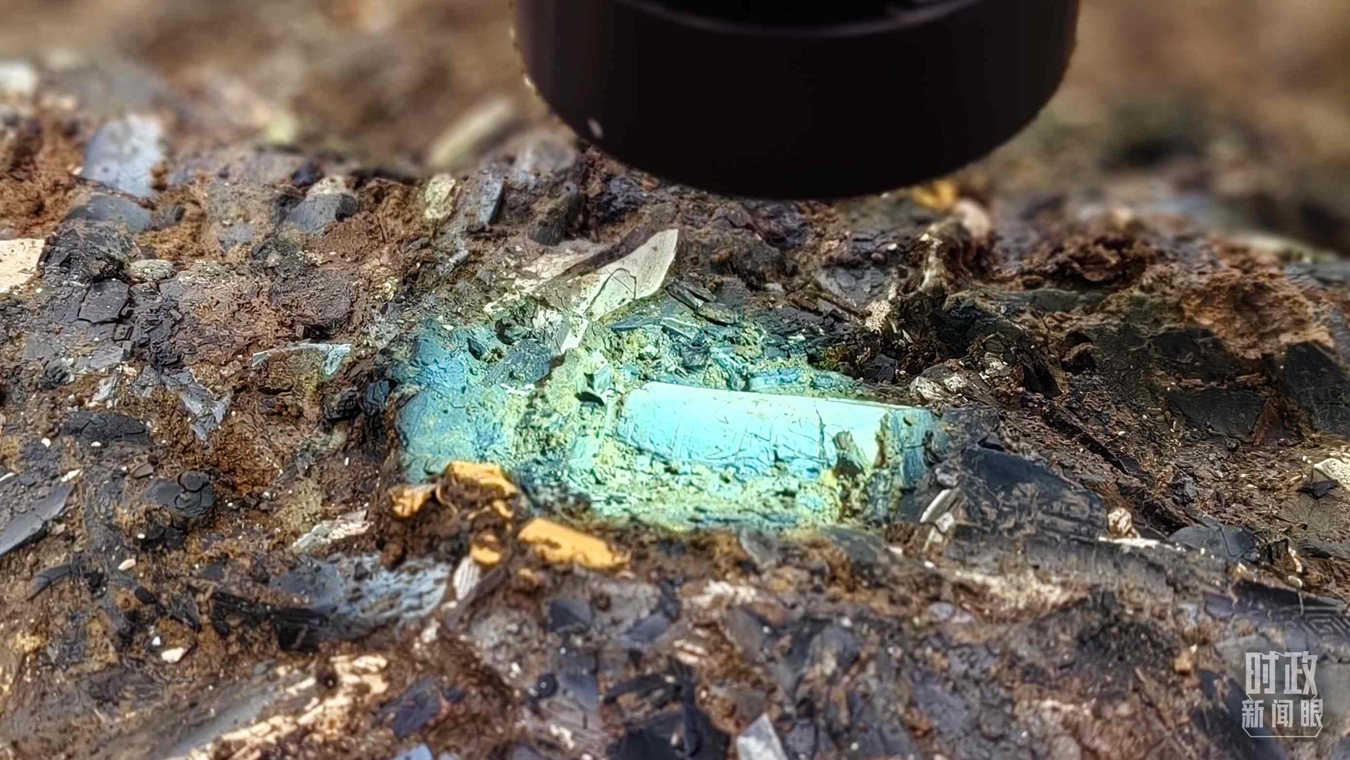 △顯微鏡下,三星堆文物的紋路清晰可見。(總臺(tái)央視記者王萌萌拍攝)