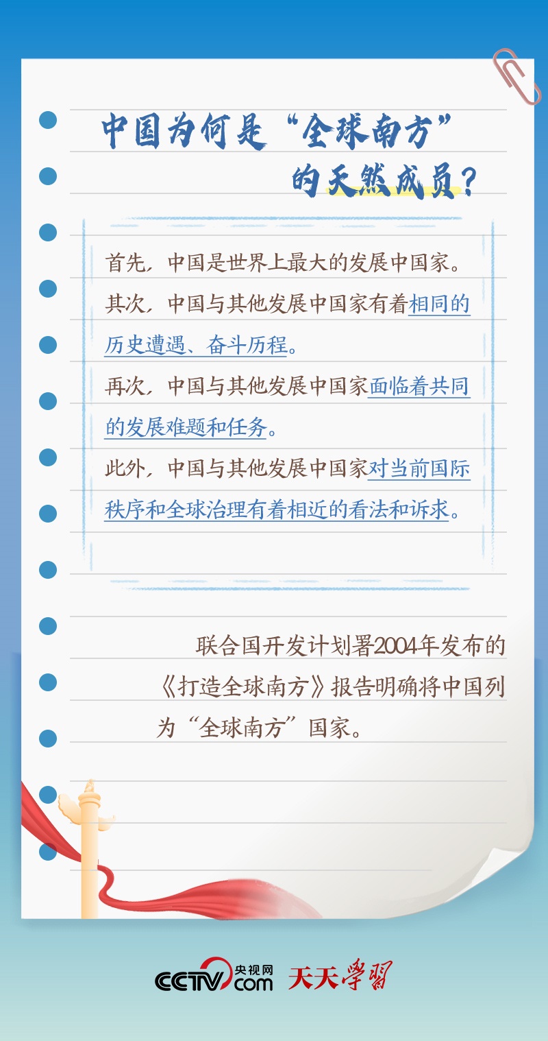 “作為發(fā)展中國家、‘全球南方’的一員,中國始終同其他發(fā)展中國家同呼吸、共命運”;“中南作為‘全球南方’天然成員,更要團結一致,共同呼吁擴大發(fā)展中國家在國際事務中的話語權和影響力”;“提升‘全球南方’國家在全球治理中的代表性和發(fā)言權”。