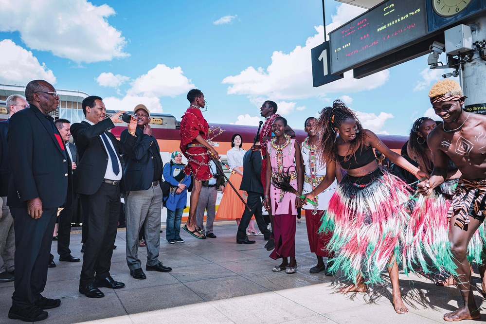 多國駐肯使節(jié)在肯尼亞內羅畢的蒙內鐵路內羅畢站觀看文藝演出(2023 年 10 月 6 日攝) 王冠森攝 / 本刊