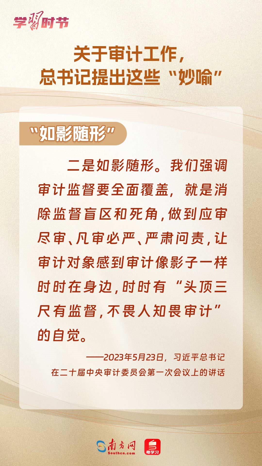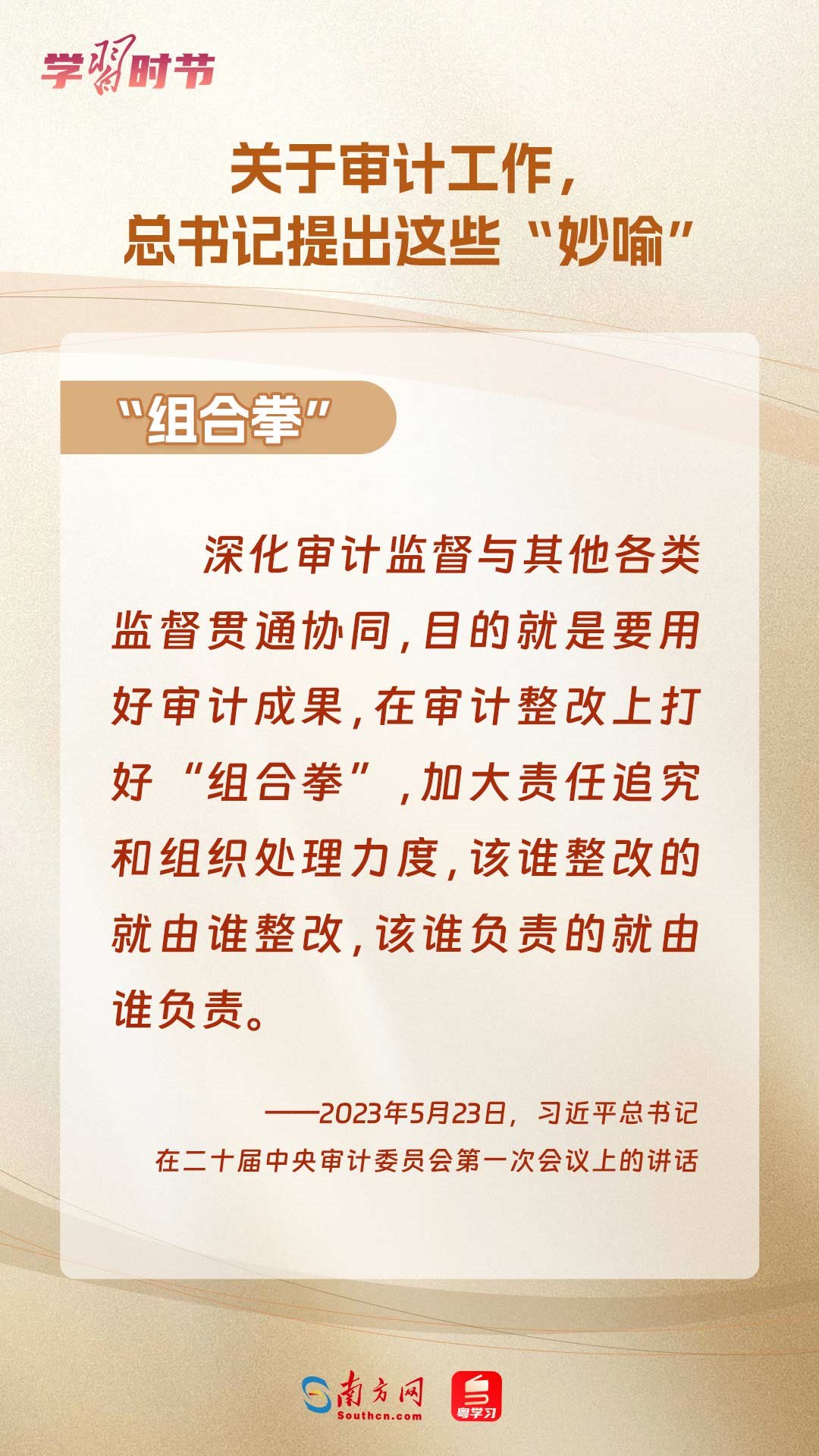 11月1日出版的《求是》雜志刊登了習(xí)近平總書(shū)記在二十屆中央審計(jì)委員會(huì)第一次會(huì)議上的講話全文??倳?shū)記在重要講話中“妙喻”審計(jì)工作,讓我們一同學(xué)習(xí)。