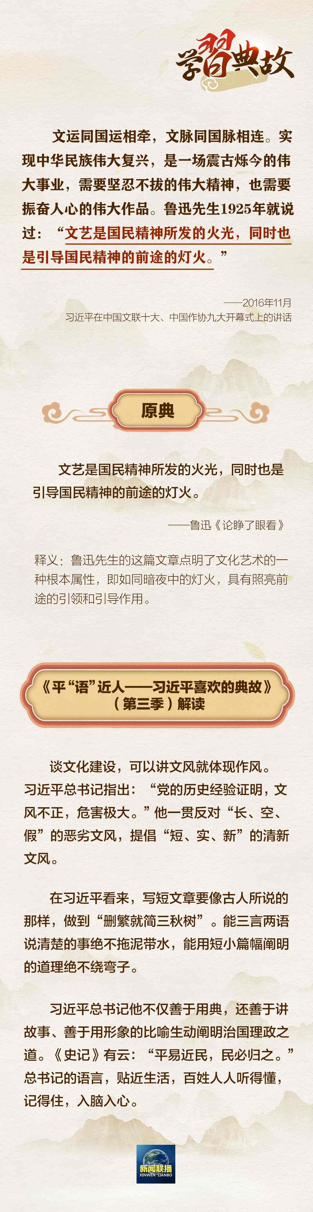 文運同國運相牽,文脈同國脈相連。文化自信是一個國家、一個民族發(fā)展中,最基本、最深沉、最持久的力量。黨的二十大報告中指出:“全面建設社會主義現(xiàn)代化國家,必須堅持中國特色社會主義文化發(fā)展道路?!眹@“文化建設”這一主題,總書記曾講到哪些典故?一起學習↓↓↓