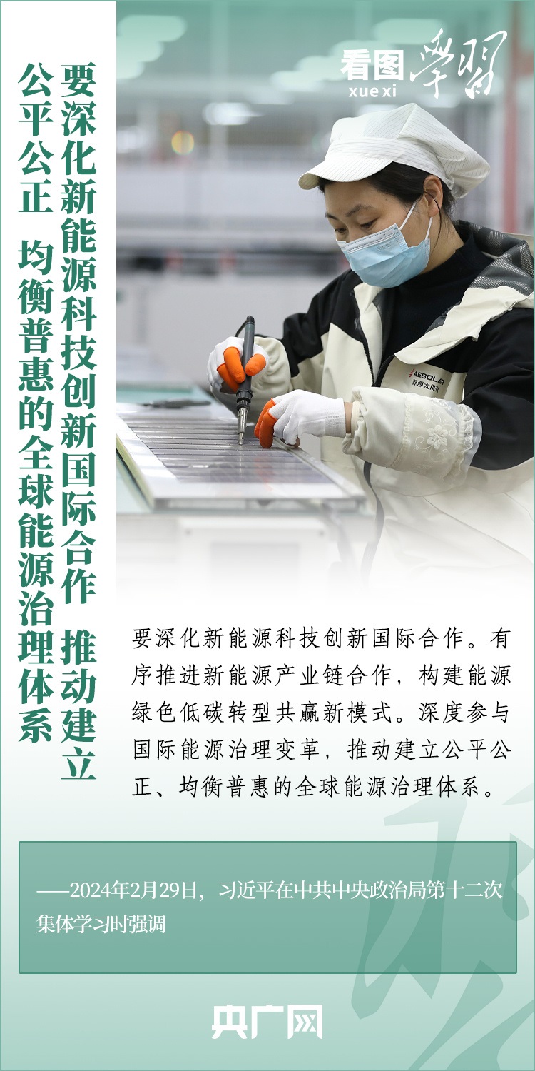 能源安全事關(guān)經(jīng)濟(jì)社會發(fā)展全局。2月29日,習(xí)近平總書記在中共中央政治局第十二次集體學(xué)習(xí)時強(qiáng)調(diào),我們要順勢而為、乘勢而上,以更大力度推動我國新能源高質(zhì)量發(fā)展,為中國式現(xiàn)代化建設(shè)提供安全可靠的能源保障,為共建清潔美麗的世界作出更大貢獻(xiàn)。一起來學(xué)習(xí)!
