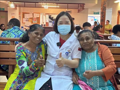 △廣東“送醫(yī)上島-光明行”醫(yī)療隊(duì)員與患者合影。