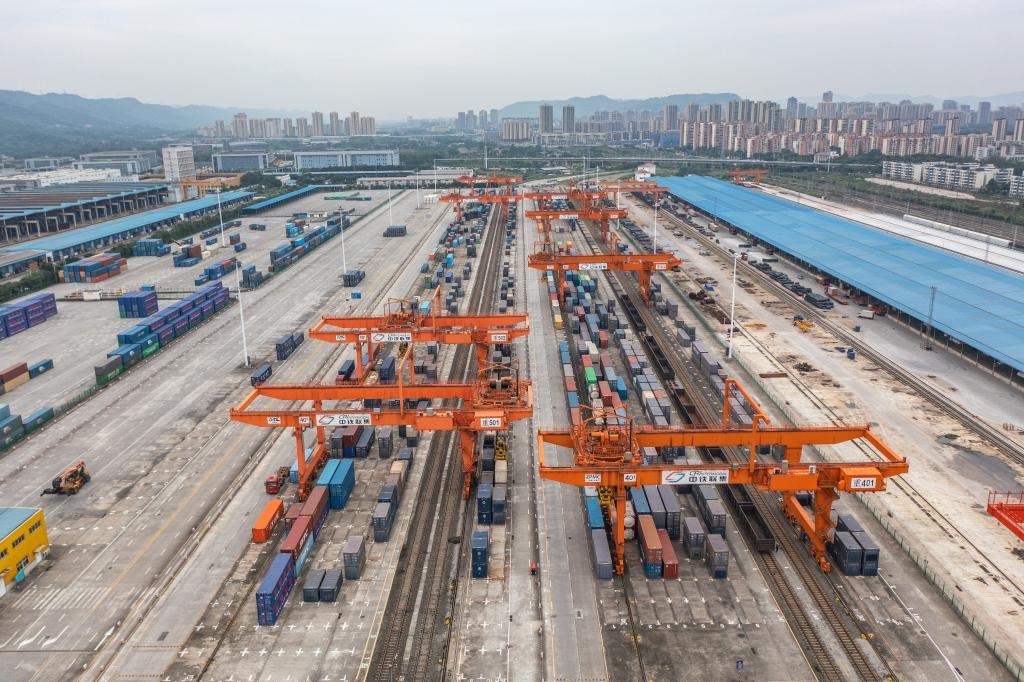 如今,“四向”物流通道在這里交匯:向西,中歐班列直達(dá)歐洲多國(guó);向東,渝甬班列直抵寧波舟山港;向北,“渝滿俄”班列開(kāi)行;向南,西部陸海新通道直達(dá)廣西欽州港,再通往世界多個(gè)國(guó)家和地區(qū)……