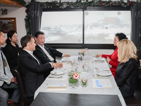 前一天,雙方發(fā)表4份聯(lián)合聲明,簽署綠色發(fā)展、航空、農(nóng)業(yè)食品、商務(wù)、人文等領(lǐng)域近20項雙邊合作文件。此時在春雪紛飛、云海浩渺中,兩國元首“不打領(lǐng)帶”溝通交流,加深彼此理解。此情此景,與兩國元首2019年的“尼斯夜談”、“豫園茶敘”,2023年的“松園會晤”,一脈相承。