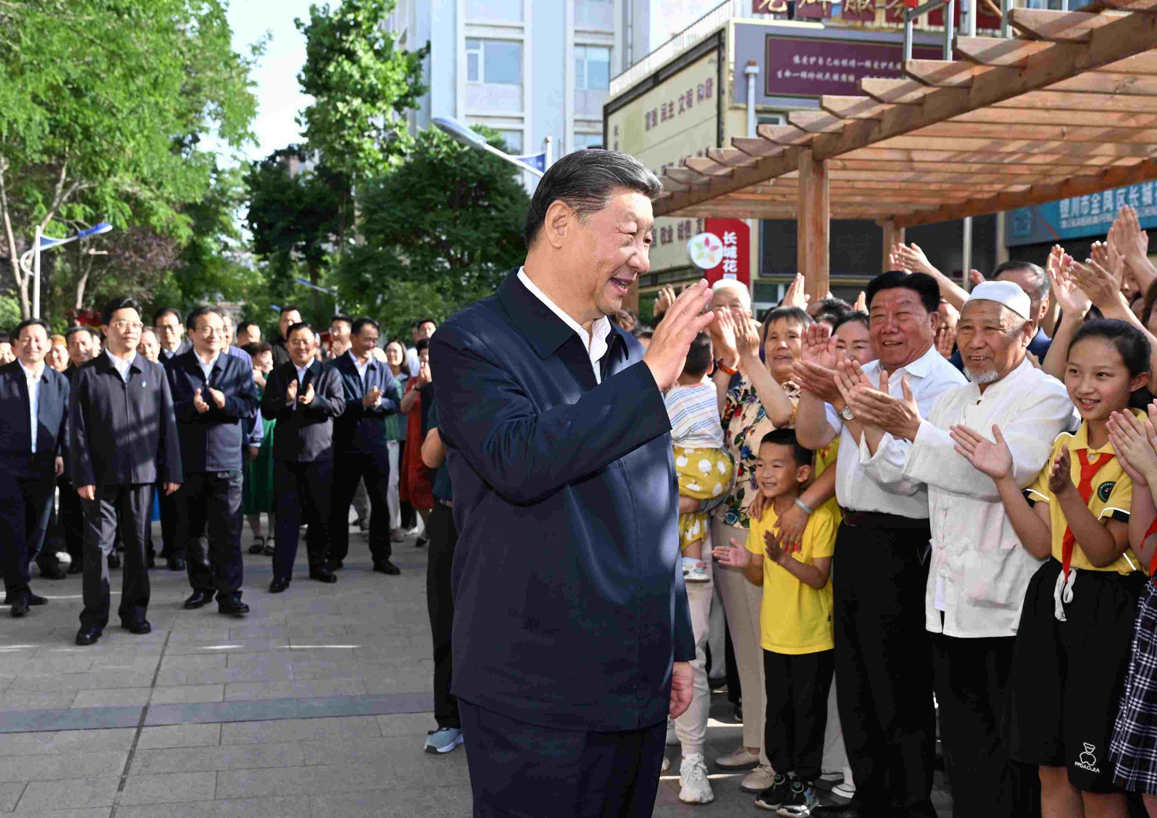 19 日下午,習(xí)近平總書記在寧夏回族自治區(qū)考察調(diào)研。他來到銀川市金鳳區(qū)長城花園社區(qū),了解社區(qū)發(fā)揮基層黨組織作用、優(yōu)化便民惠民服務(wù)、推動各族群眾交往交流交融等情況。(杜尚澤)