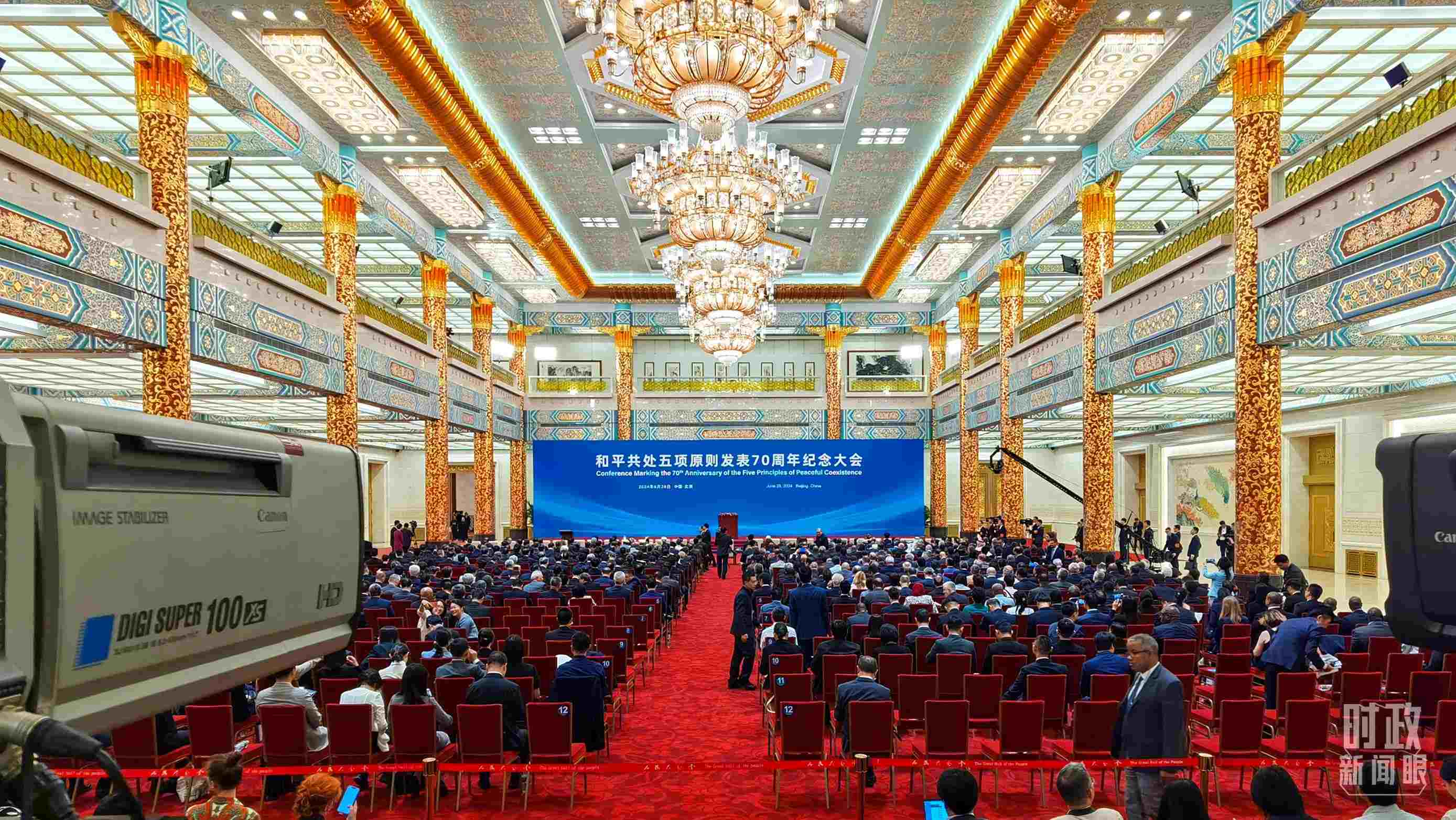 △和平共處五項(xiàng)原則發(fā)表70周年紀(jì)念大會(huì)現(xiàn)場(chǎng)。(總臺(tái)央視記者鄂介甫拍攝)