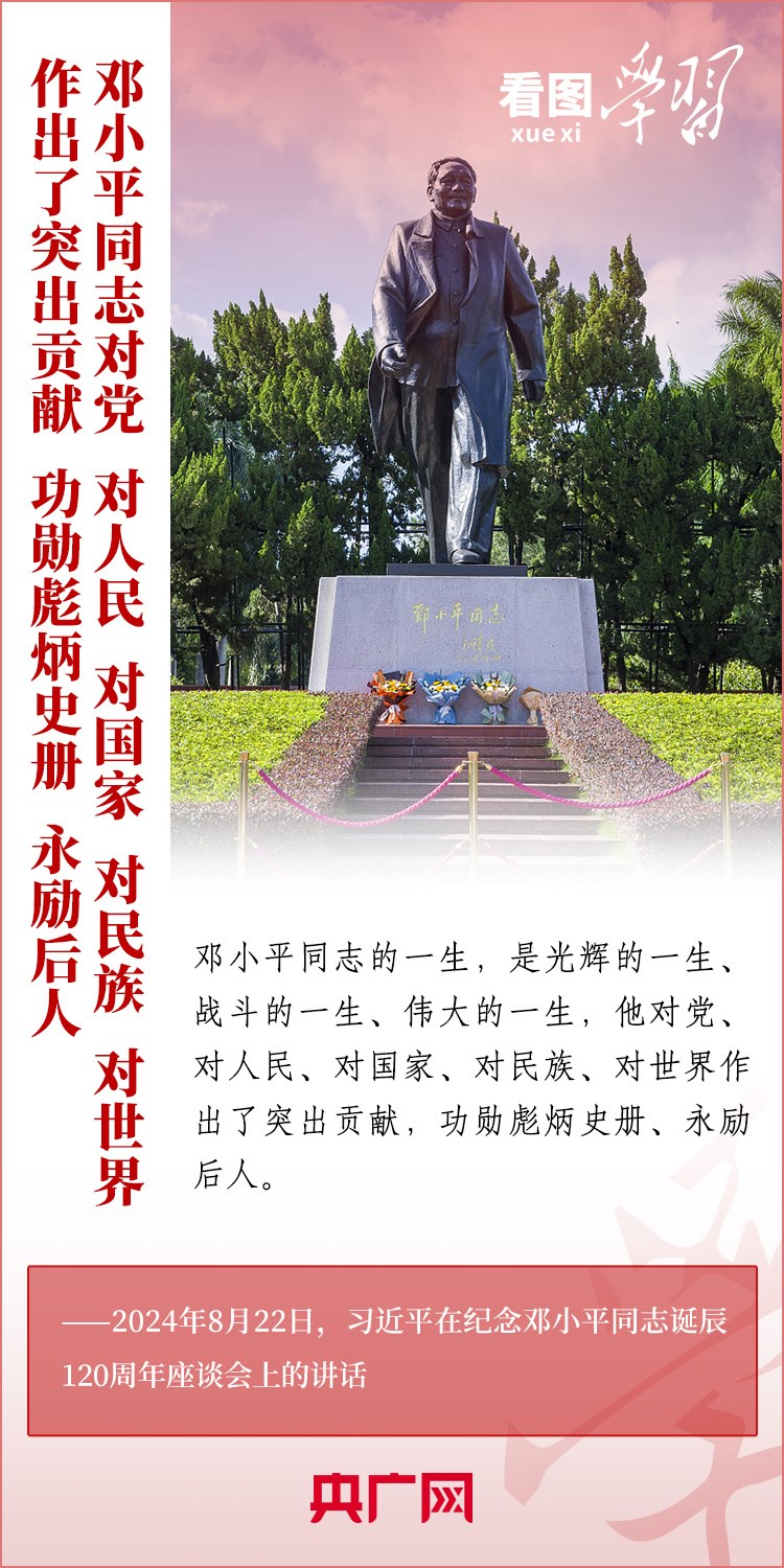 8月22日,習(xí)近平總書(shū)記在紀(jì)念鄧小平同志誕辰120周年座談會(huì)上發(fā)表重要講話指出,鄧小平同志的歷史功勛是全方位的、開(kāi)創(chuàng)性的,對(duì)中國(guó)和世界的影響是深刻的、長(zhǎng)遠(yuǎn)的??倳?shū)記強(qiáng)調(diào),對(duì)鄧小平同志最好的紀(jì)念,就是把他開(kāi)創(chuàng)的中國(guó)特色社會(huì)主義事業(yè)繼續(xù)推向前進(jìn)。我們要緊緊圍繞以中國(guó)式現(xiàn)代化全面推進(jìn)強(qiáng)國(guó)建設(shè)、民族復(fù)興偉業(yè)這個(gè)中心任務(wù),繼往開(kāi)來(lái),奮發(fā)進(jìn)取。一起來(lái)學(xué)習(xí)!