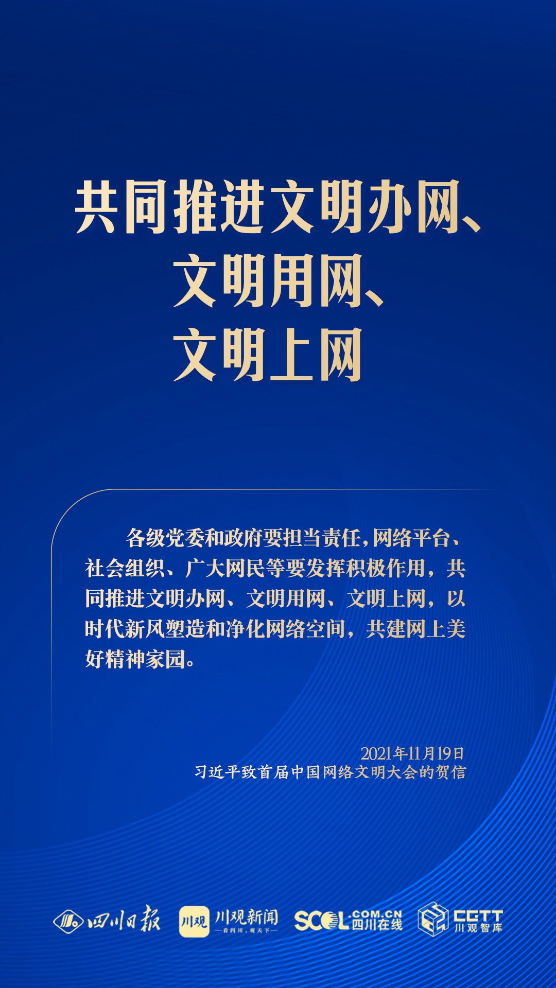 網(wǎng)絡(luò)空間是億萬民眾共同的精神家園。黨的十八大以來,習(xí)近平總書記高度重視網(wǎng)絡(luò)文明建設(shè),把網(wǎng)絡(luò)文明作為社會(huì)主義精神文明建設(shè)和網(wǎng)絡(luò)強(qiáng)國建設(shè)的重要內(nèi)容,引領(lǐng)和推動(dòng)網(wǎng)絡(luò)文明建設(shè)取得顯著成效。2024年中國網(wǎng)絡(luò)文明大會(huì)舉辦之際,川觀新聞梳理習(xí)近平總書記關(guān)于網(wǎng)絡(luò)文明建設(shè)的相關(guān)論述,一起來學(xué)習(xí)↓↓↓