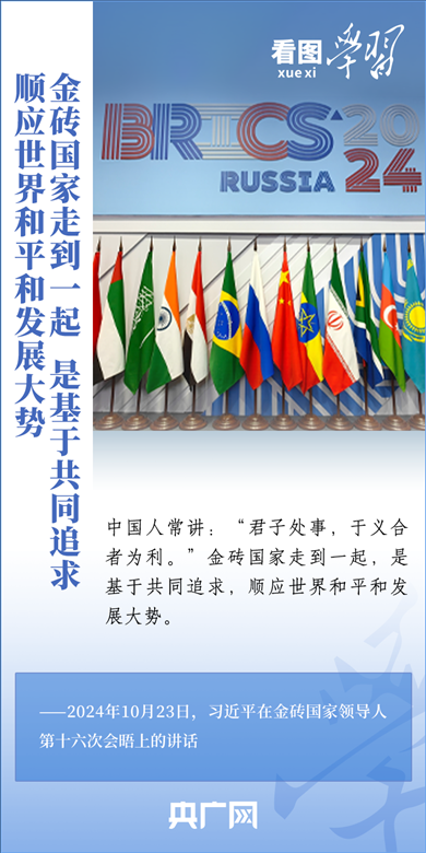 當?shù)貢r間10月23日,國家主席習近平在俄羅斯喀山出席金磚國家領導人第十六次會晤并發(fā)表重要講話。習主席深刻闡述推動“大金磚合作”高質量發(fā)展的中國主張,就金磚大家庭發(fā)展合作提出五點務實舉措,表達了中方愿同金磚各國一道,攜手更多“全球南方”國家共同推動構建人類命運共同體的真誠愿望。一起來學習!