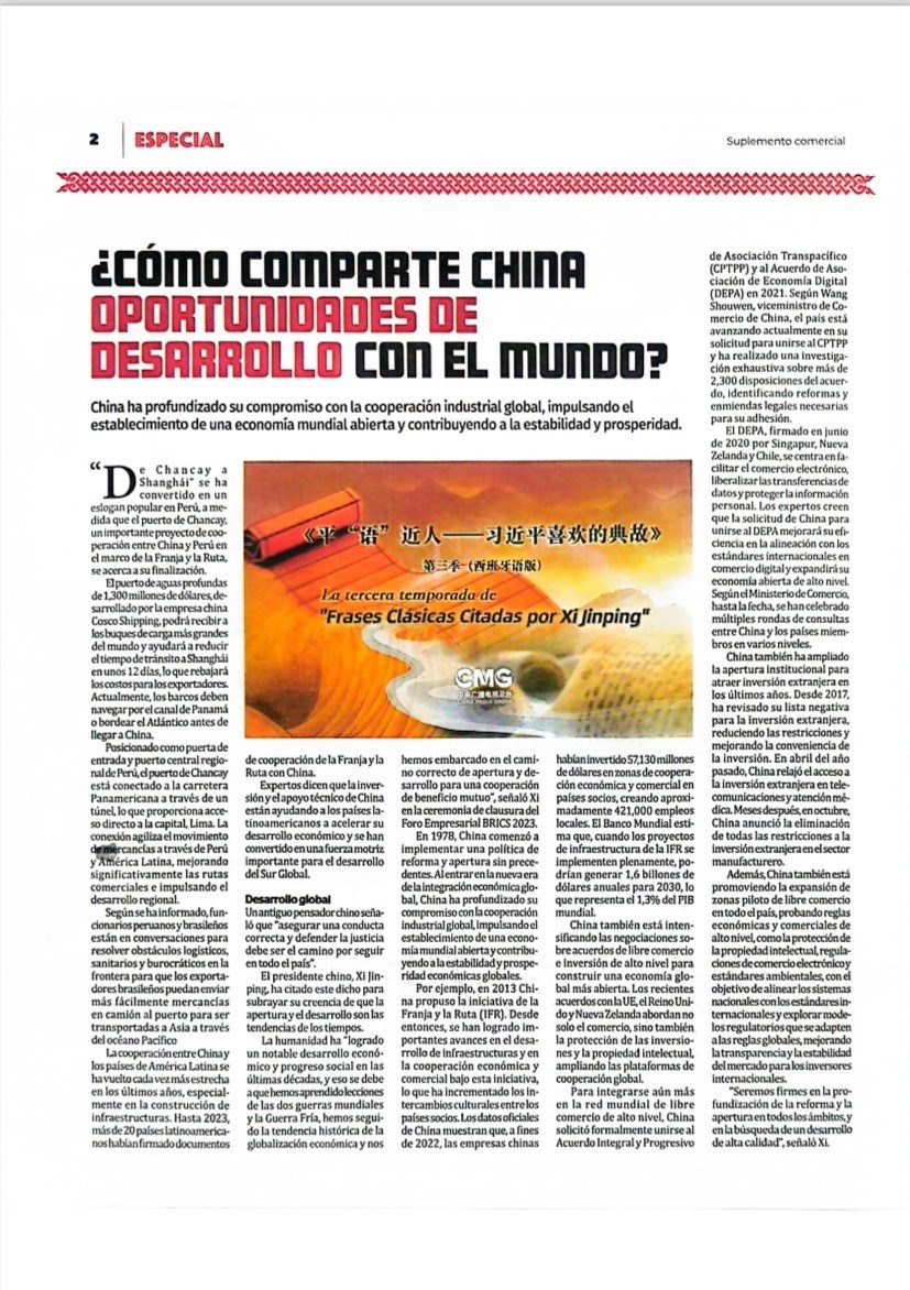 △《秘魯人報》刊發(fā)文章《<平“語”近人>專題片播出 更好地了解中國——秘魯各大媒體播出新一季片集》