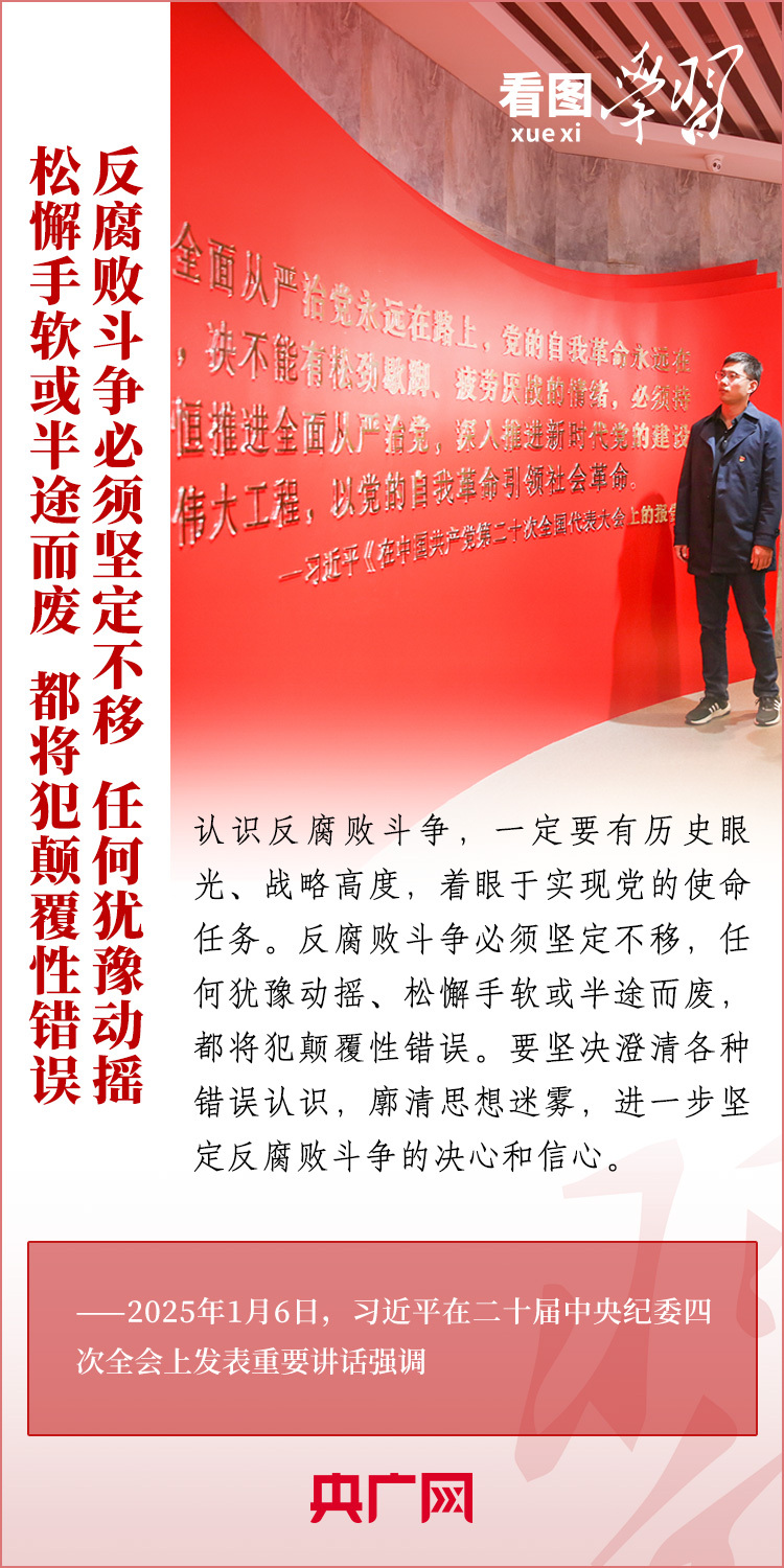 1月6日,習(xí)近平總書記在二十屆中央紀(jì)委四次全會上發(fā)表重要講話,充分肯定過去一年全面從嚴(yán)治黨取得的新進(jìn)展、新成效,深刻分析當(dāng)前反腐敗斗爭形勢,對堅(jiān)決打好反腐敗斗爭攻堅(jiān)戰(zhàn)、持久戰(zhàn)、總體戰(zhàn)提出明確要求??倳洀?qiáng)調(diào),新時(shí)代新征程,必須堅(jiān)持用改革精神和嚴(yán)的標(biāo)準(zhǔn)管黨治黨,努力取得更大成效,確保黨的二十大和二十屆三中全會部署落地落實(shí),確保黨始終成為中國特色社會主義事業(yè)的堅(jiān)強(qiáng)領(lǐng)導(dǎo)核心,推動中國式現(xiàn)代化行穩(wěn)致遠(yuǎn)。一起來學(xué)習(xí)!