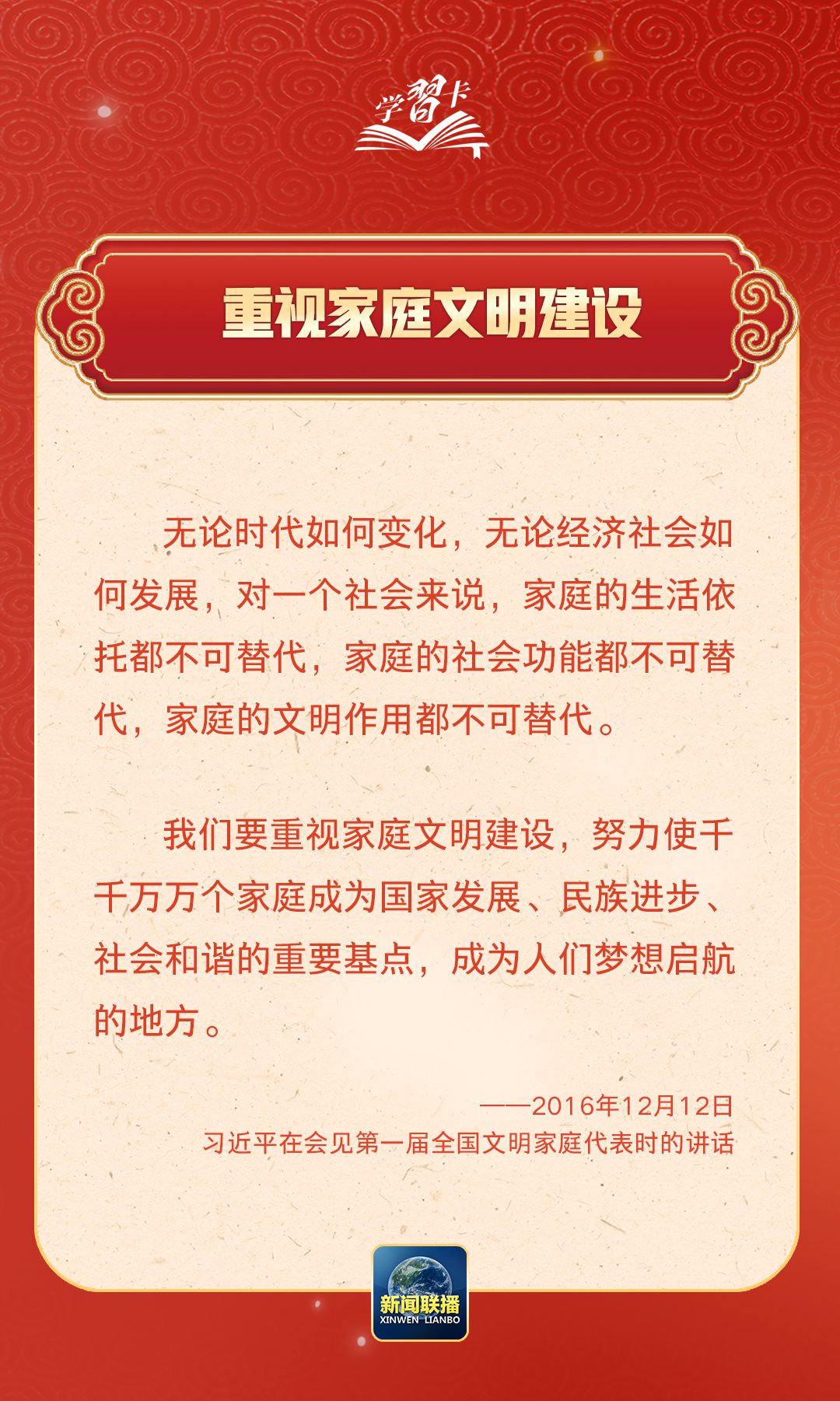 在習(xí)近平總書記心中,家國(guó)的分量很重。他多次強(qiáng)調(diào)要重視家庭建設(shè),提倡愛家愛國(guó)相統(tǒng)一,指出廣大家庭都要弘揚(yáng)優(yōu)良家風(fēng),以千千萬萬家庭的好家風(fēng)支撐起全社會(huì)的好風(fēng)氣。近日,《求是》雜志發(fā)表習(xí)近平總書記重要文章《注重家庭,注重家教,注重家風(fēng)》,一起學(xué)習(xí)↓
