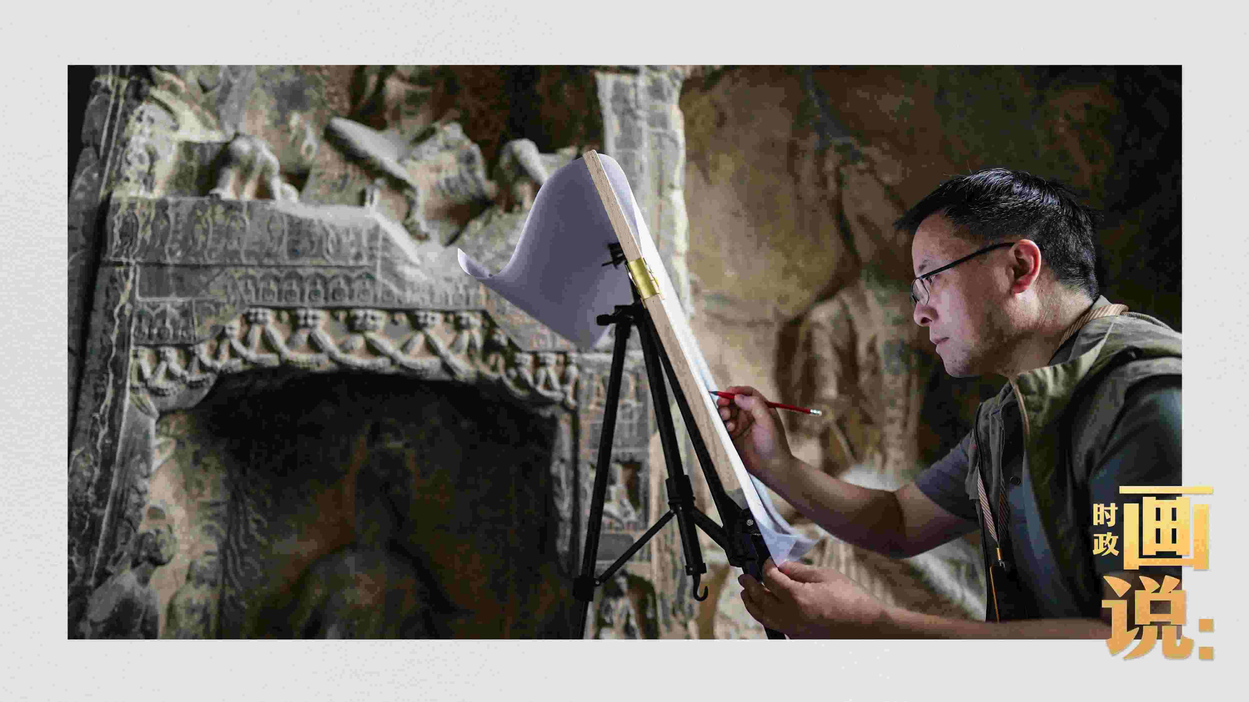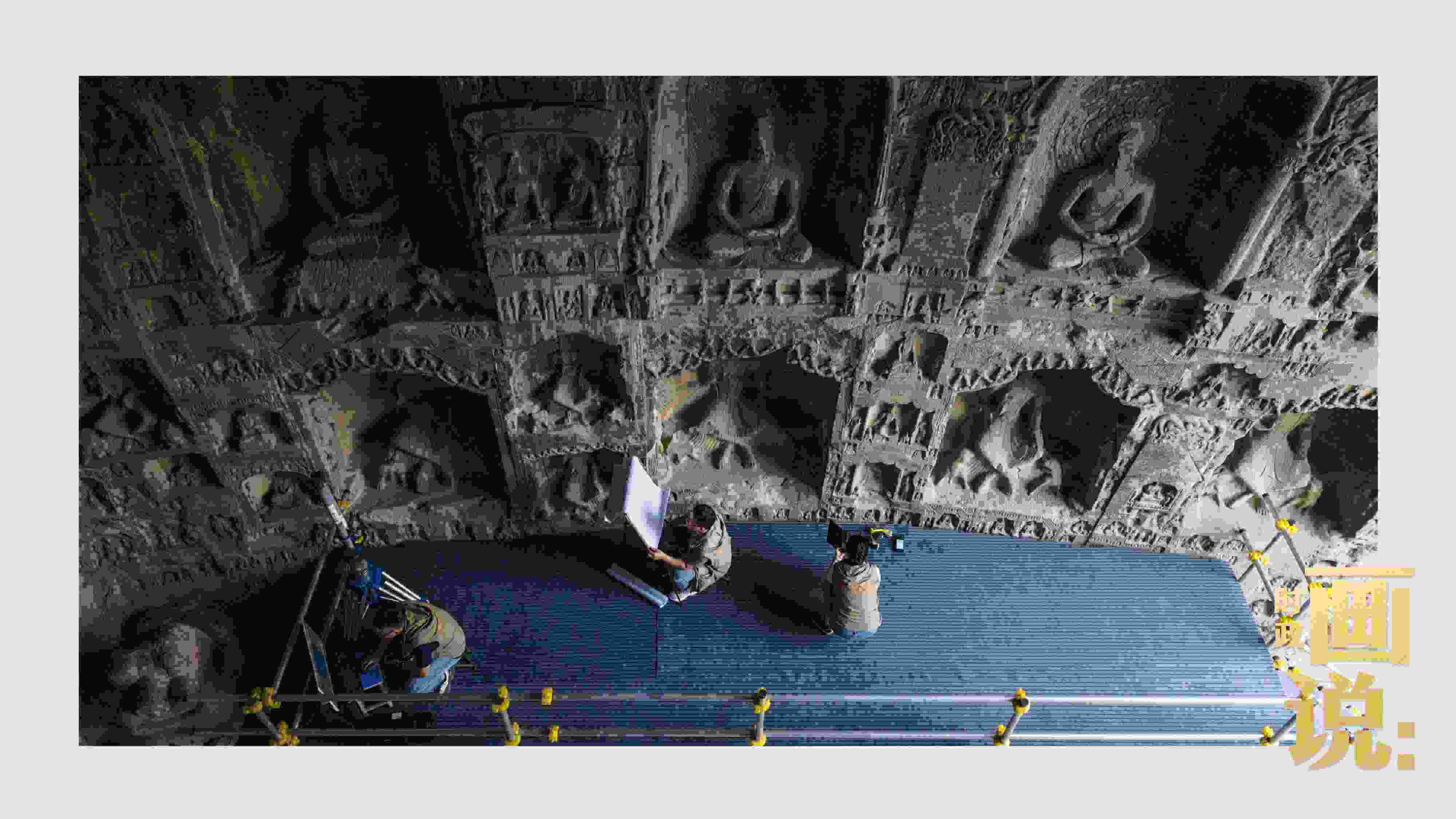 △工作人員在對(duì)石刻病害情況進(jìn)行詳細(xì)記錄