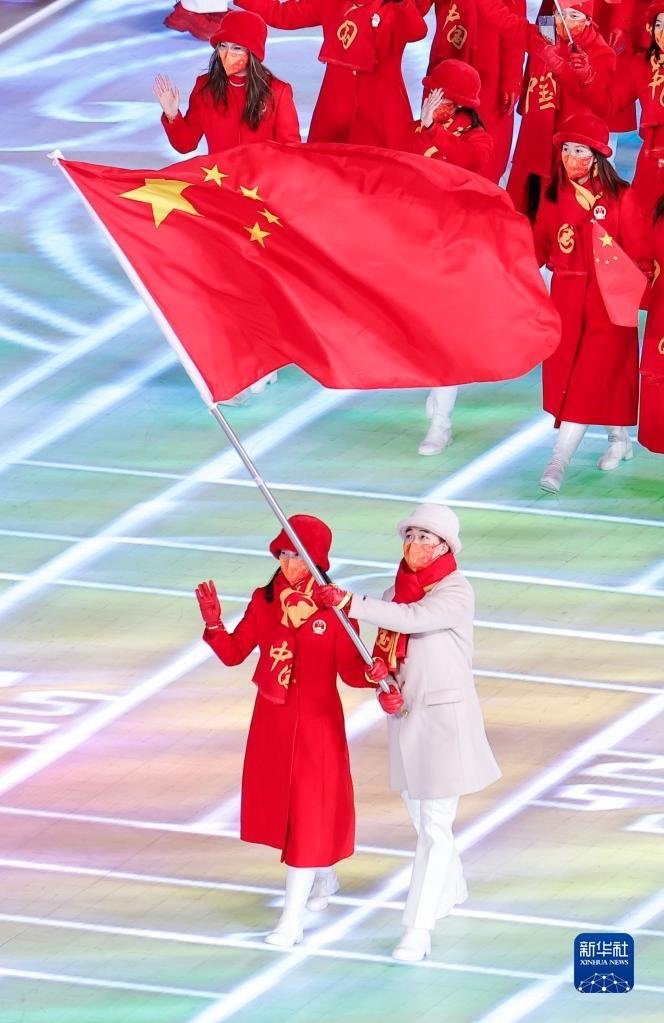 這是中國(guó)代表團(tuán)在開(kāi)幕式上入場(chǎng)。