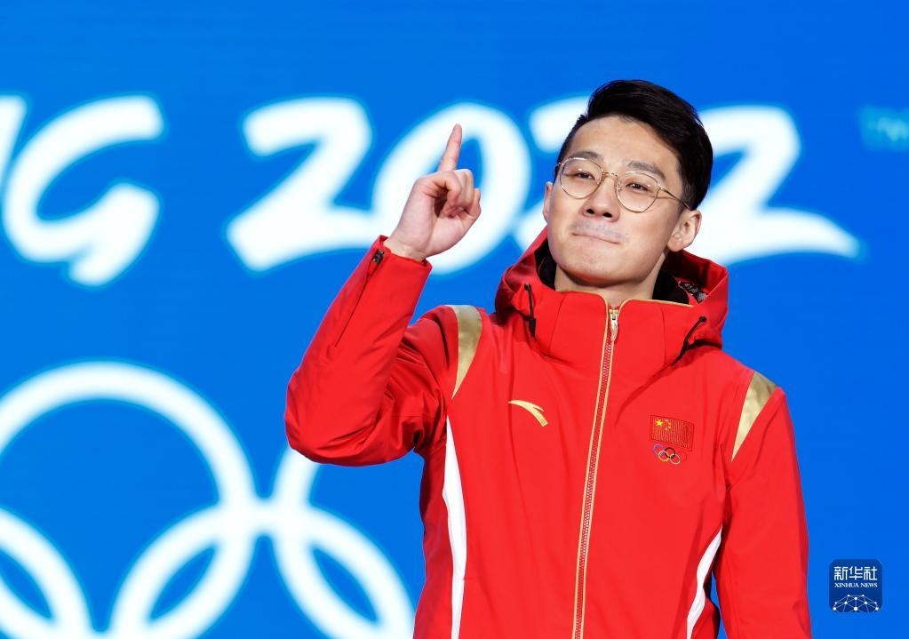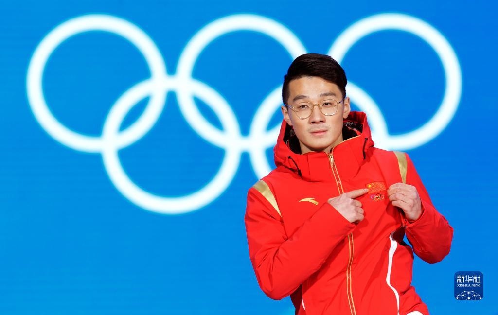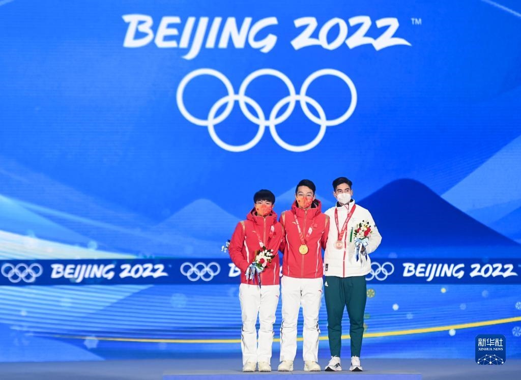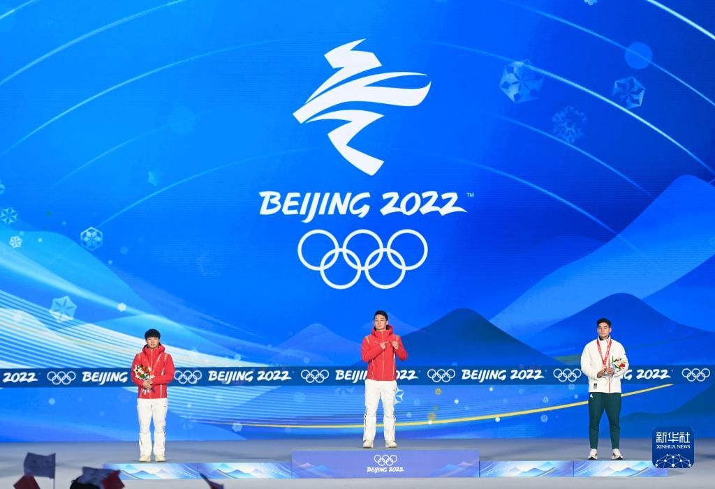 當(dāng)日,北京2022年冬奧會短道速滑男子1000米獎(jiǎng)牌頒發(fā)儀式在北京賽區(qū)頒獎(jiǎng)廣場舉行。