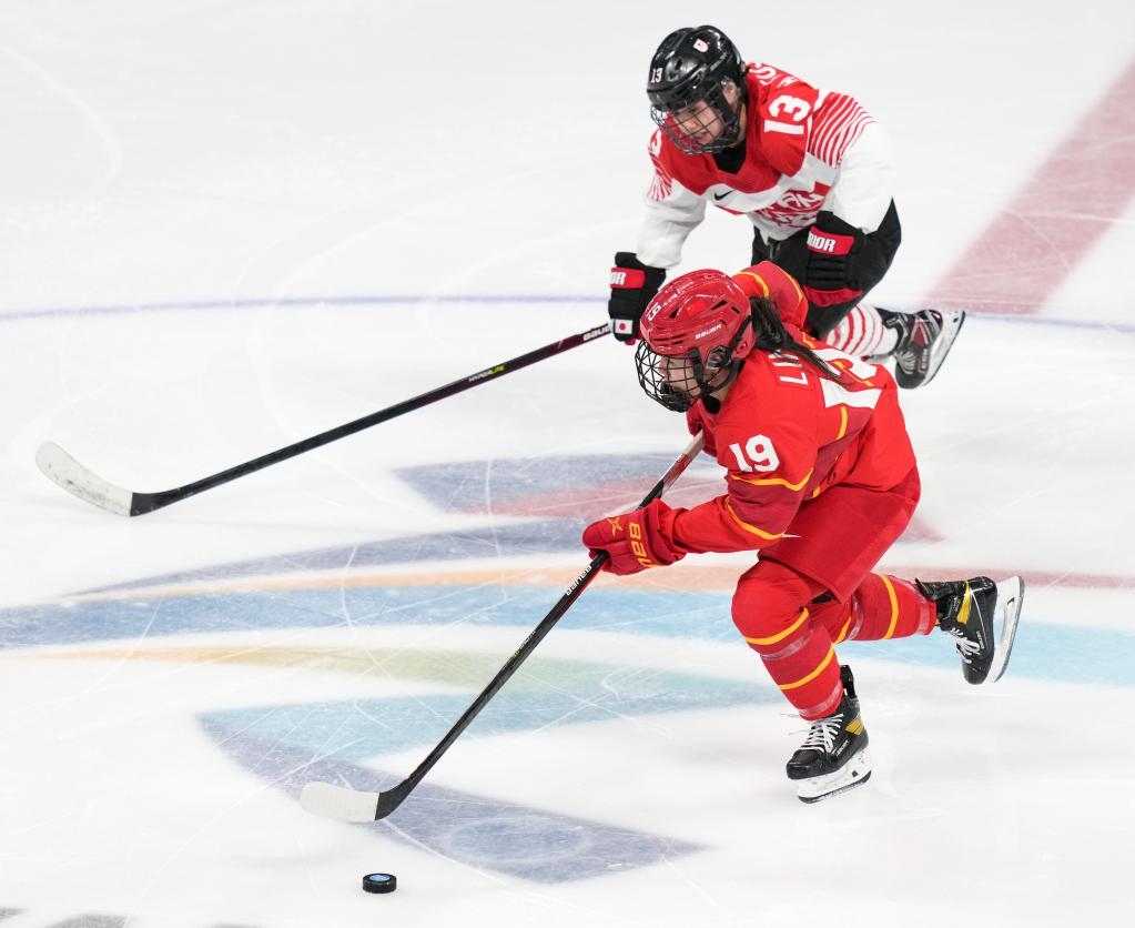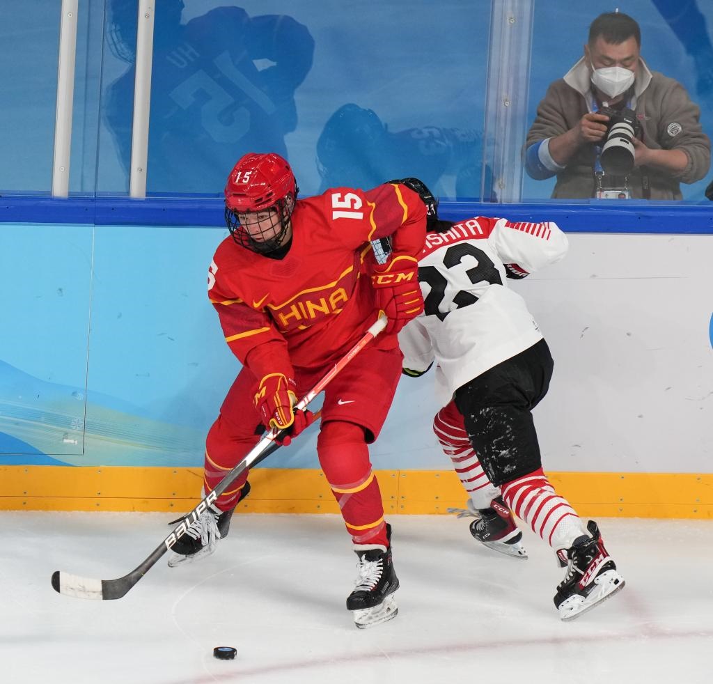 2月6日,中國隊球員張喜芳(右)在比賽中。新華社記者 孟永民 攝