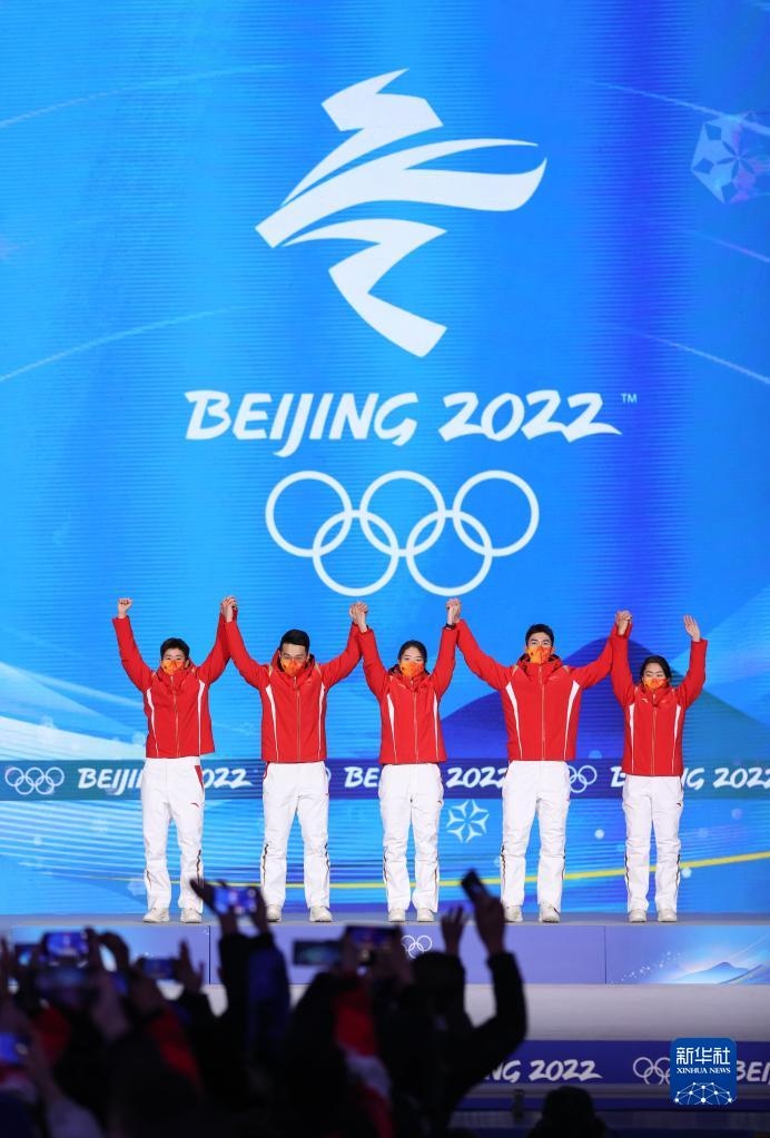2月6日,北京2022年冬奧會短道速滑混合團體接力獎牌頒發(fā)儀式在北京賽區(qū)頒獎廣場舉行。
