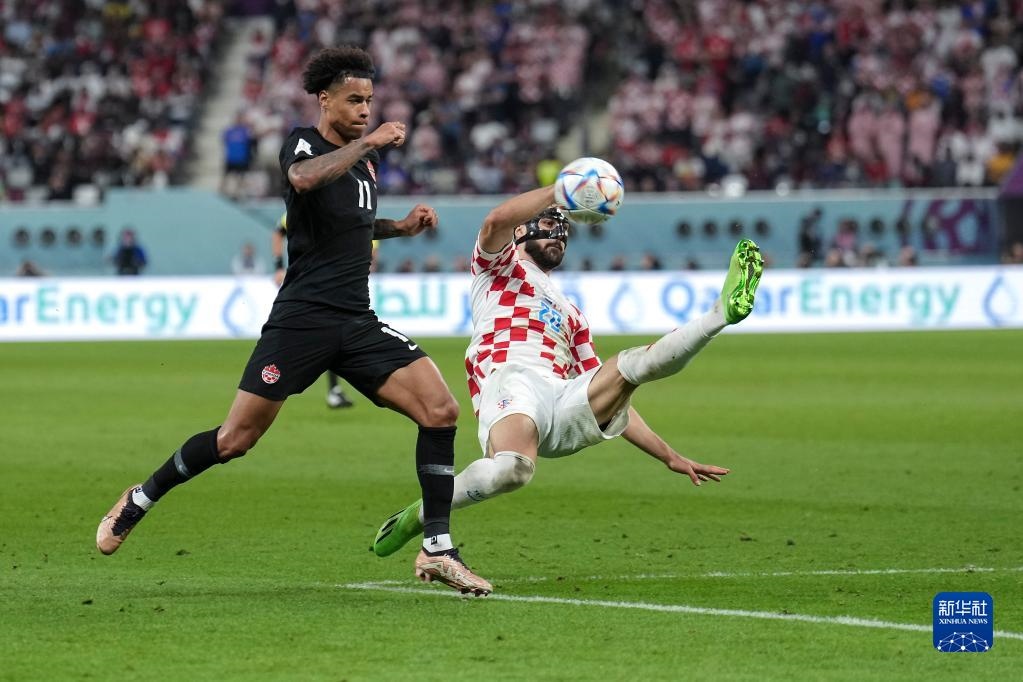 當(dāng)日,在卡塔爾多哈哈里發(fā)國(guó)際體育場(chǎng)進(jìn)行的2022卡塔爾世界杯足球賽F組比賽中,克羅地亞隊(duì)以4比1戰(zhàn)勝加拿大隊(duì)。
