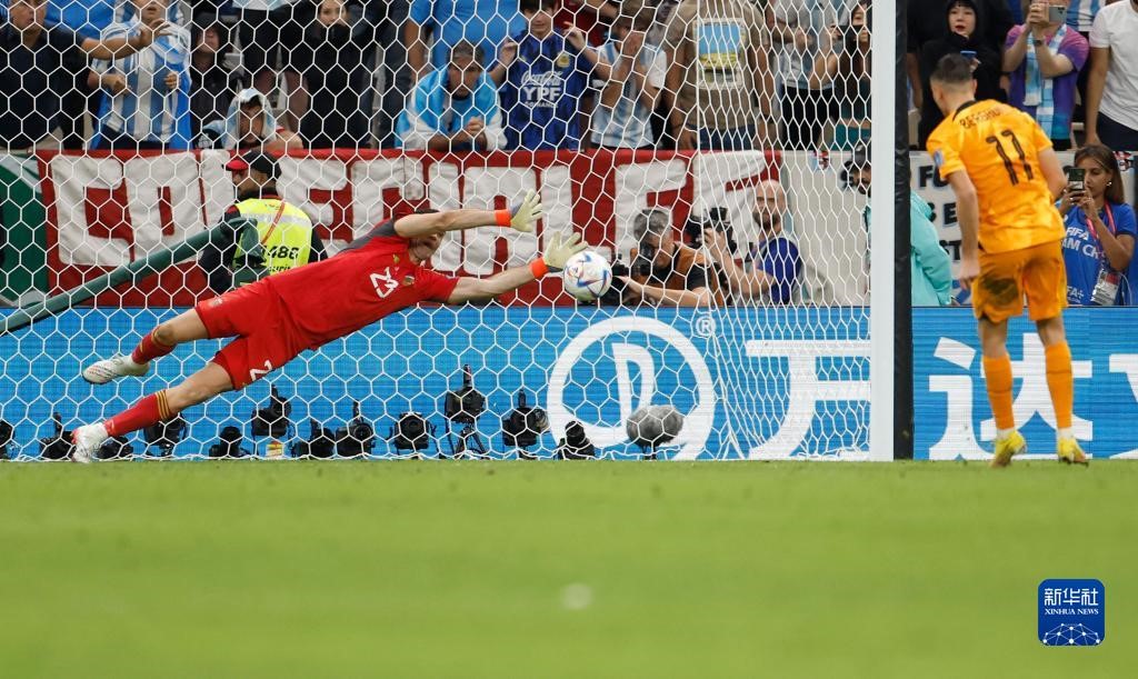 12月9日,阿根廷隊(duì)守門(mén)員馬丁內(nèi)斯在點(diǎn)球大戰(zhàn)中。