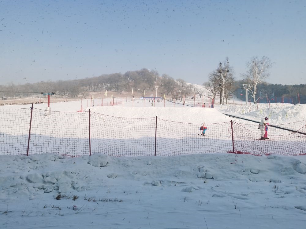 鹿群不遠處,便是平山神鹿滑雪場,雪道上不少兒童正在這里進行研學活動。