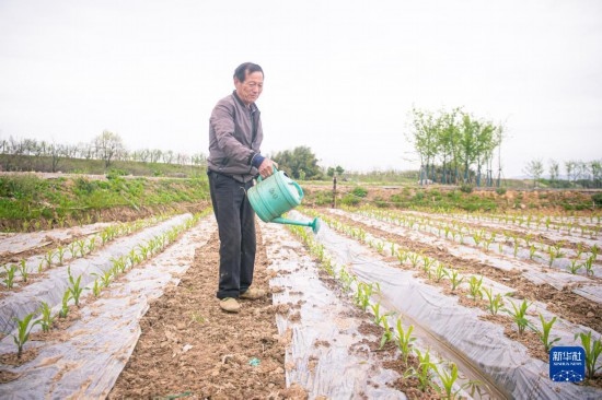 3月29日,在諸暨市楓橋鎮(zhèn)杜黃新村的農(nóng)耕體驗研學基地,村民為新苗澆水。近年來,農(nóng)旅融合發(fā)展給當?shù)卮迕裥略隽?0多個就業(yè)崗位。
