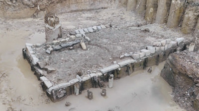 朔門古港遺址位于溫州古城北大門——朔門之外,南依古城,北鄰甌江,東靠海壇山,隔江與江心嶼雙塔遙相呼應(yīng)。2021年10月,溫州望江路下穿隧道施工過程中發(fā)現(xiàn)遺跡線索,工程立即停工。2022年,經(jīng)浙江省文物考古研究所與溫州市文物考古研究所聯(lián)合發(fā)掘,發(fā)現(xiàn)了分別建于宋元和明清的朔門甕城遺跡,實(shí)證千年以來岸線變遷的江堤、橋梁、陡門閘、棧道等建筑遺跡,還有8座宋代碼頭、2艘宋代沉船,以及數(shù)以噸計(jì)的宋元瓷片堆積和形式各樣的漆木器等遺物,年代主要集中于宋元時期。800年前溫州古港“城腳千家具舟楫,江心雙塔壓濤波”的繁華景象,重現(xiàn)于人們眼前。