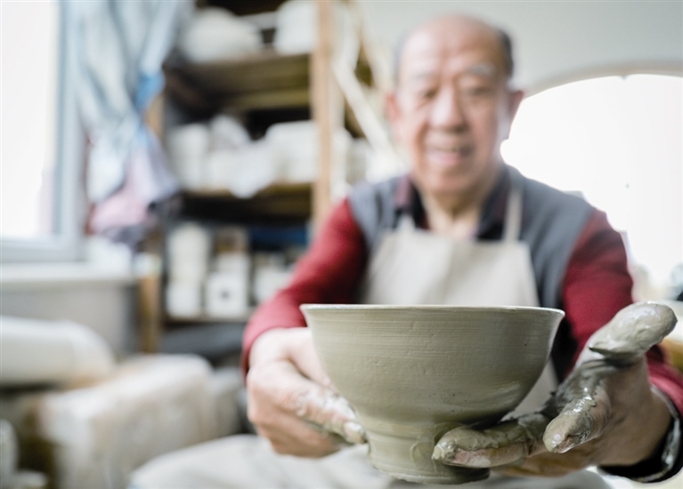 隨后,他走進“饅頭窯”旁邊的一口窯洞,這是當時張家的一間手工作坊,揉泥、拉坯、上釉等一系列制作陶瓷的工序都是在這里完成?!拔揖统錾谶@個村子,已經(jīng)是張家瓷藝的第九代傳人了。作為中國磁州窯譜系,清水河黑礬溝瓷藝生產(chǎn)歷史至少已有800年?!标P(guān)于這項非遺的歷史故事,張選老人向記者娓娓道來:大約400年前,他們張家走西口從山西來到清水河謀生,當時清水河黑礬溝有一家姓杜的人家做陶瓷營生,張家的先人在杜家打工,大概這樣打工做了三輩人吧,杜家忽然不做了,搬離了黑礬溝,他們張家便把杜家的產(chǎn)業(yè)買了下來繼續(xù)做?!澳莻€時候黑礬溝生產(chǎn)的瓷器都與人們生活息息相關(guān),比如腌菜缸、水甕、碗盤等,一個家庭手工作坊一天能生產(chǎn)500個碗呢,生意很好,人們靠做這個營生也過上了不錯的生活。”張選回憶著清水河瓷藝鼎盛時期的場景。上個世紀70年代,由于交通、技術(shù)等原因,黑礬溝燃燒了幾百年的窯火熄滅,傳統(tǒng)“饅頭窯”被正式廢棄,轉(zhuǎn)移到窯溝鄉(xiāng)后手工作坊變成了機械化生產(chǎn),這也讓清水河的陶瓷名聲大噪。當時,在窯溝鄉(xiāng)一帶,從事陶瓷生產(chǎn)的有近萬人,陶瓷業(yè)成為清水河支柱產(chǎn)業(yè)。