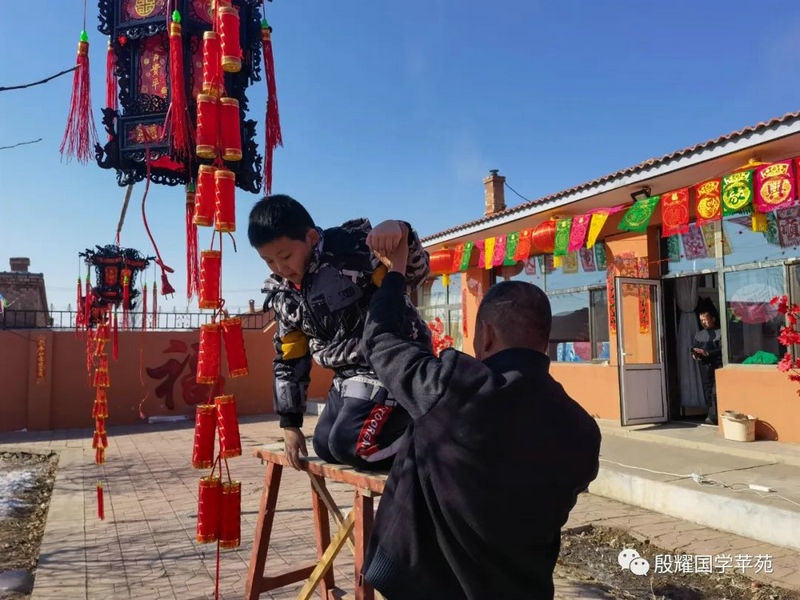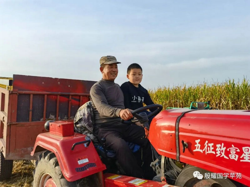 父親讓曈曈接地氣的愿望實(shí)現(xiàn)了,長得越來越壯實(shí)的曈曈真是打心眼喜歡上了農(nóng)村,喜歡看叔叔大爺們是如何勞動的。春天澆地的時(shí)候,他跟上我的發(fā)小利利到地里去,手里拿上一張鐵鍬學(xué)著去攏堰堤;秋收的時(shí)候他爬上了丁補(bǔ)元駕駛的收割機(jī),感受農(nóng)民們收割玉米的喜悅;接羔的時(shí)候,他又鉆進(jìn)利軍家的羊群里,抱著出生沒有幾天的小羊羔,給小羊羔喂牛奶……春節(jié)前的一兩天是他最忙的時(shí)候:一會跟上大爹貼春聯(lián),一會跟上茹義大爺掛紅燈,忙得不亦樂乎。前一段時(shí)間回村里他又要跟上利軍大爺出村放羊去,又要跟上茹義大爺去種玉米,在城里他是見識不到這些的。