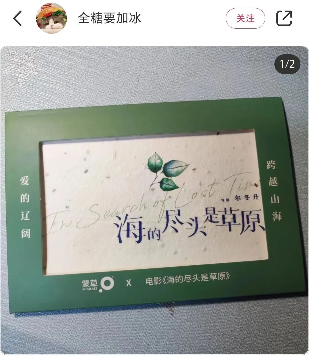 大火的影片周邊文創(chuàng)還有種子紙,它像一個(gè)明信片一樣,打開它,仿佛打開了塵封的草原往事。