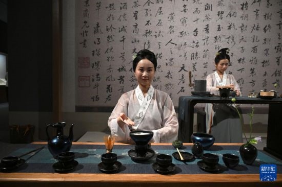 6月26日,工作人員在展覽現(xiàn)場展示斗茶。