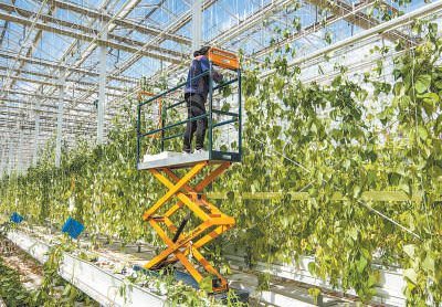 在吉林卓遠農(nóng)業(yè)發(fā)展有限公司,工作人員利用無土栽培技術(shù),在室內(nèi)培育蔬菜。