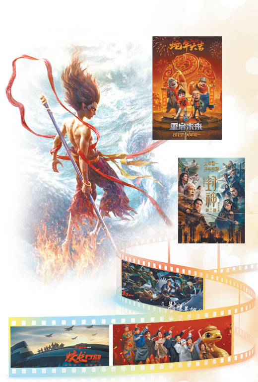 《哪吒之魔童鬧?!贰短铺?900》《熊出沒·重啟未來》《蛟龍行動》《封神第二部:戰(zhàn)火西岐》《射雕英雄傳:俠之大者》等6部影片同步上映,2025年春節(jié)檔被稱為“最強春節(jié)檔”。家國情懷、傳統(tǒng)文化、IP電影、電影工業(yè)化等成為這個春節(jié)檔的關鍵詞。