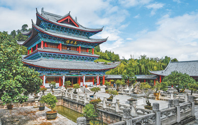 “一座土司府,半部民族史”。木府萬(wàn)卷樓前的這10個(gè)字,將邊地古城各民族交往交流交融的故事娓娓道來(lái)。獅子山拱衛(wèi)、護(hù)城河縈繞,木府的選址與布局十分講究。作為麗江木氏土司府的衙署,木府始建于明代,后來(lái)歷經(jīng)多次擴(kuò)建和修繕,形成了現(xiàn)有的建筑群布局,議事廳、萬(wàn)卷樓、護(hù)法殿等沿中軸線依次排開(kāi)。歷經(jīng)400多年風(fēng)雨的木府,作為麗江古城中的重要文化地標(biāo),聆聽(tīng)著各民族百川匯流向前的歷史回響。