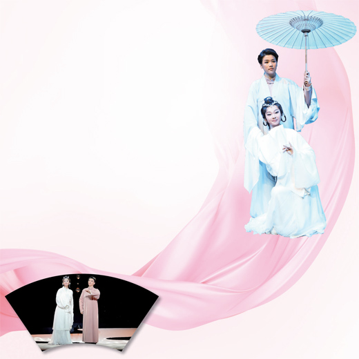 有貼合當(dāng)代審美的故事新編,還有頗具巧思的舞臺(tái)設(shè)計(jì)。舞臺(tái)主背景是一把可以“穿越時(shí)空”的油紙傘,舞臺(tái)右側(cè)還有一座流水造型的橋?!坝图垈阌娩摻Y(jié)構(gòu)作為傘架,以一種略帶反光、藍(lán)天云紋的布作為傘面,需要場(chǎng)景變化時(shí),用人力拉動(dòng);斷橋用鋼結(jié)構(gòu)與木板打造,讓舞臺(tái)更加立體?!睂?dǎo)演戎兆琪介紹,劇組花了一個(gè)月時(shí)間設(shè)計(jì)這些舞臺(tái)裝置,“要第一眼就能抓住觀眾的心”。