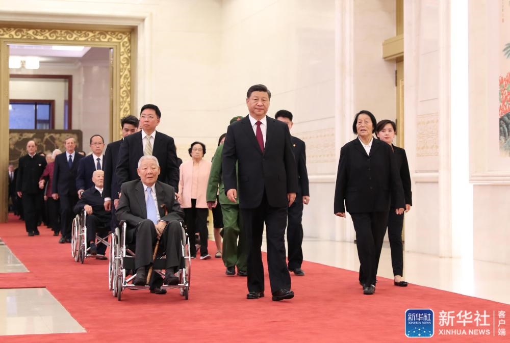 王滬寧宣讀習(xí)近平簽署的中華人民共和國主席令。主席令指出,為了慶祝中華人民共和國成立70周年,隆重表彰為新中國建設(shè)和發(fā)展作出杰出貢獻的功勛模范人物,弘揚民族精神和時代精神,根據(jù)第十三屆全國人民代表大會常務(wù)委員會第十三次會議的決定,授予于敏等8人共和國勛章,授予勞爾·卡斯特羅·魯斯等6人友誼勛章,授予葉培建等28人國家榮譽稱號。