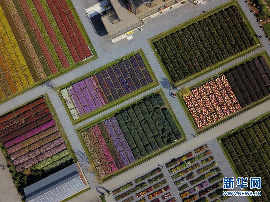 這是北京世園會(huì)園藝小鎮(zhèn)(10月7日無(wú)人機(jī)拍攝)。