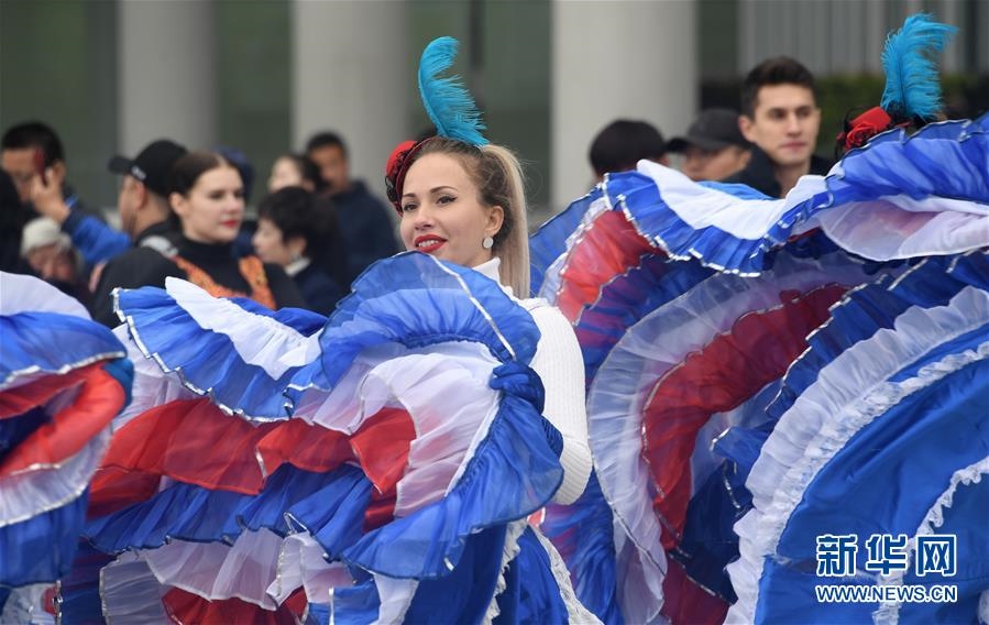 演員在北京世園會(huì)園區(qū)表演(4月29日攝)。