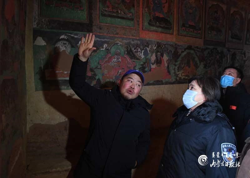 布小林沿著山體走進石窟,察看壁畫現(xiàn)存狀況,了解石窟保護修復(fù)、學(xué)術(shù)研究以及遺址保護規(guī)劃和方案制定情況,要求對阿爾寨石窟實施整體保護,做好考古發(fā)掘研究,挖掘其文化內(nèi)涵,發(fā)揮石窟的歷史文化價值。