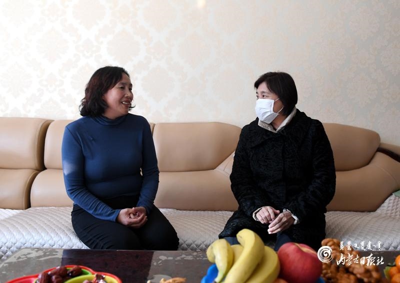 1月5日,自治區(qū)黨委副書記、自治區(qū)主席布小林在烏蘭察布市興和縣城關(guān)鎮(zhèn)下崗就業(yè)困難人員楊玉英家里,布小林與她促膝交談,詳細了解目前生活情況。內(nèi)蒙古日報記者 韓卿立 攝