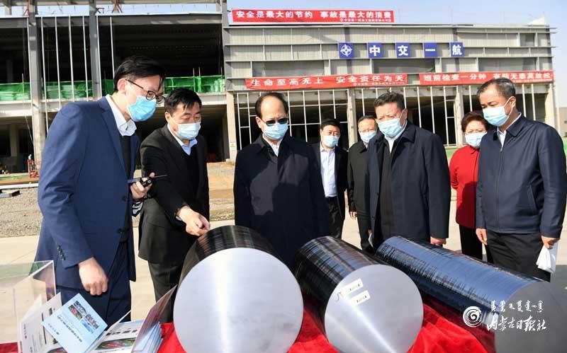 3月23日,自治區(qū)黨委書記、人大常委會主任石泰峰來到包頭美科硅能源有限公司二期項目施工現(xiàn)場,了解規(guī)劃發(fā)展情況。 內(nèi)蒙古日報社融媒體記者 袁永紅