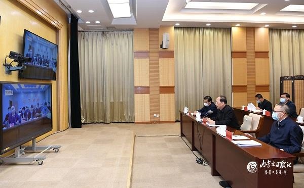 10月24日,自治區(qū)黨委書記、人大常委會(huì)主任石泰峰來到自治區(qū)疫情防控工作指揮部與二連浩特市視頻連線,了解應(yīng)對(duì)處置新冠肺炎疫情工作情況。內(nèi)蒙古日?qǐng)?bào)社融媒體記者袁永紅攝