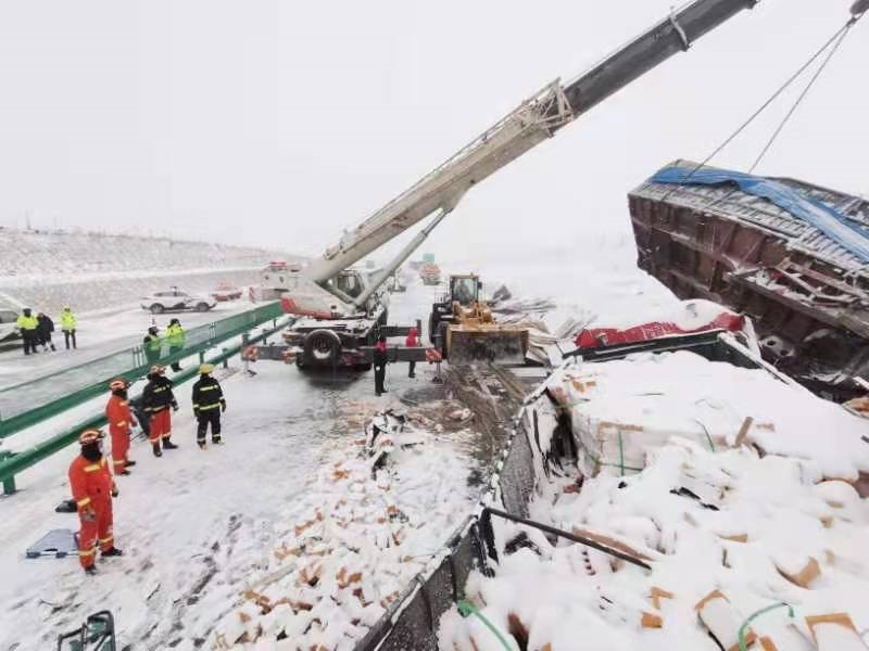 記者當晚從內(nèi)蒙古自治區(qū)應急管理廳以及烏海市有關部門了解到,事發(fā)時,1輛重型半掛牽引車因雨雪天氣道路結(jié)冰發(fā)生側(cè)滑,致使后方行駛的另一輛重型半掛車采取措施不及發(fā)生碰撞,繼而引發(fā)多車連環(huán)相撞,致3死2傷。事故發(fā)生后,烏海市公安、消防、交警等部門立即趕赴現(xiàn)場展開救援工作。由于部分大貨車車頭后部天然氣儲罐破損發(fā)生泄漏,給現(xiàn)場處置救援帶來一定難度。消防部門通過破拆救援,成功將傷者抬至安全地帶,移交給現(xiàn)場120醫(yī)護人員緊急送往就近醫(yī)院治療。截至當日24時許,事故現(xiàn)場清理完畢。