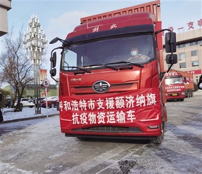 鑒于額濟(jì)納旗疫情防控任務(wù)依然艱巨、醫(yī)療物資用量仍然很大,呼和浩特市新冠病毒疫情聯(lián)防聯(lián)控暨新冠病毒疫情防控工作指揮部決定立即捐贈(zèng)第一批價(jià)值300萬(wàn)元的防疫物資。在呼和浩特市新冠病毒疫情聯(lián)防聯(lián)控暨新冠病毒疫情防控工作指揮部的統(tǒng)籌部署下,指揮部物資保障組成員單位市財(cái)政局、發(fā)改委、衛(wèi)健委、商務(wù)局、交通局、紅十字會(huì)全力以赴、齊心協(xié)力,愛(ài)心企業(yè)、金融機(jī)構(gòu)積極捐贈(zèng),呼和浩特警備區(qū)傾力相助,讓愛(ài)心“大禮包”如期發(fā)貨。在發(fā)車(chē)現(xiàn)場(chǎng),中國(guó)銀行股份有限公司內(nèi)蒙古自治區(qū)分行辦公室主任葛華表示,面對(duì)疫情,中國(guó)銀行內(nèi)蒙古分行支援抗疫責(zé)無(wú)旁貸,重任在肩必須挺身,義無(wú)反顧地與全區(qū)人民站在一起,守望相助、同心戰(zhàn)“疫”、共克時(shí)艱,在積極做好疫情防控和金融服務(wù)的同時(shí),主動(dòng)擔(dān)當(dāng)責(zé)任,通過(guò)紅十字會(huì)向呼和浩特市、阿拉善盟、二連浩特市捐款近百萬(wàn)元,為地方開(kāi)展疫情防控盡一份綿薄之力。金宇生物技術(shù)股份有限公司黨委副書(shū)記張占福告訴記者:“疫情無(wú)情,人間有愛(ài)。作為動(dòng)物疫苗生產(chǎn)企業(yè),能為我區(qū)抗擊疫情出一份力,奉獻(xiàn)一份愛(ài),是企業(yè)應(yīng)盡的社會(huì)責(zé)任和義務(wù)。”在共抗疫情的關(guān)鍵時(shí)刻,內(nèi)蒙古顯鴻科技股份有限公司積極響應(yīng)市政府號(hào)召,在做好企業(yè)疫情防控的同時(shí),第一時(shí)間組織抗疫物資,用實(shí)際行動(dòng)踐行顯鴻科技“愛(ài)黨、愛(ài)國(guó)、愛(ài)企、愛(ài)家”情懷。短短幾天時(shí)間內(nèi),伊利、蒙牛、盛健、華訊等18家企業(yè)進(jìn)行愛(ài)心捐贈(zèng),大家同心同德、同向同行,堅(jiān)決助力自治區(qū)打贏這場(chǎng)疫情防控阻擊戰(zhàn)。